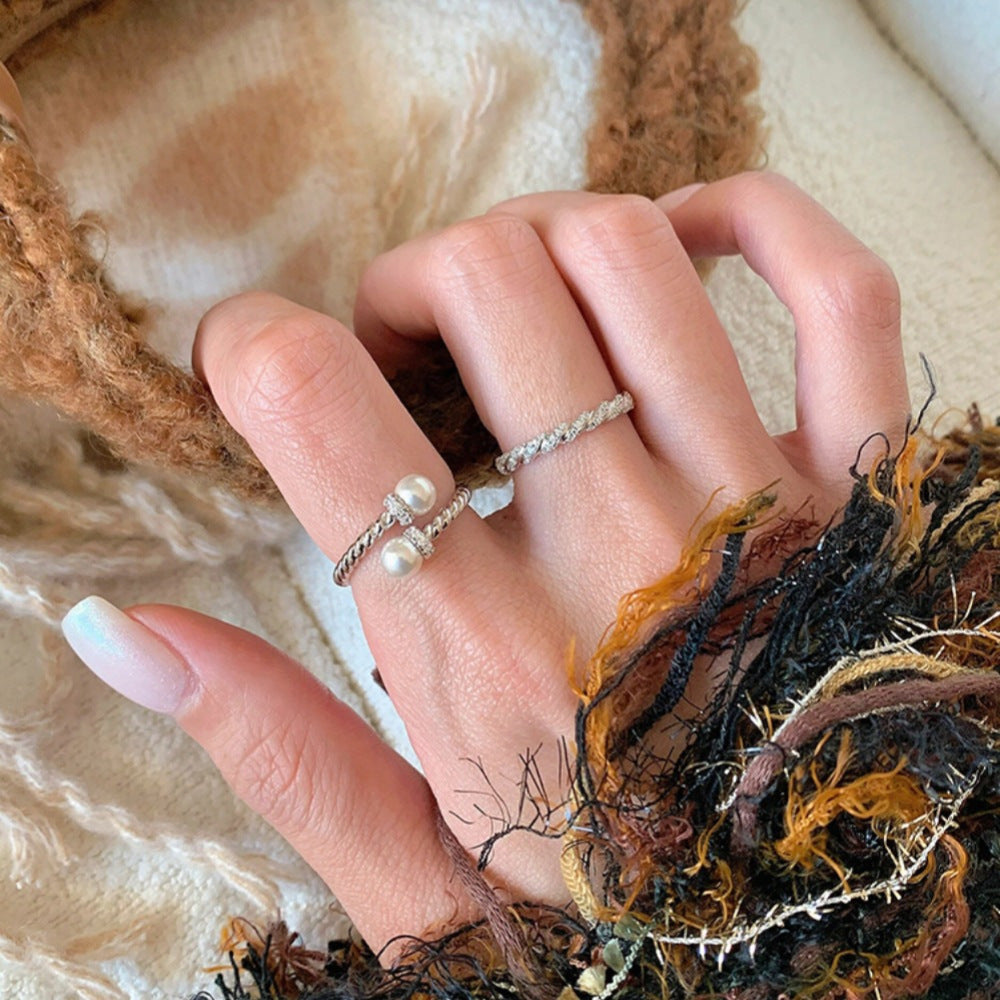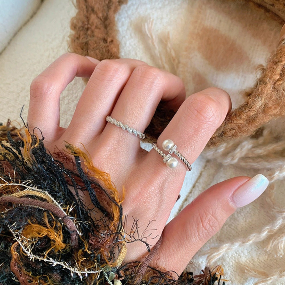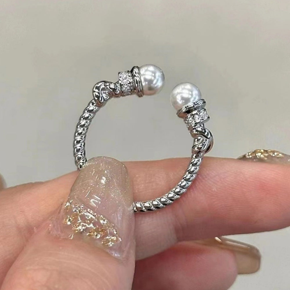 Women's Open Mouth Ring With Double Pearl Copper Ring Electroplating Finish Adjustable Band Jewelry Style Icon