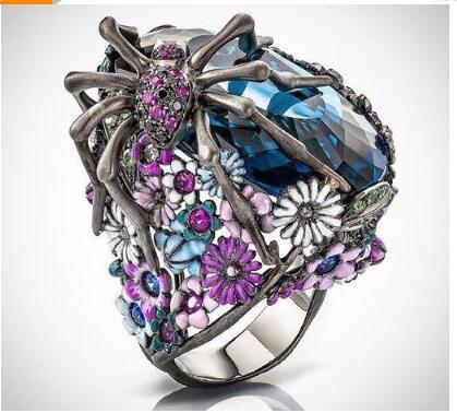 Spider Shape Drip Flower Ring Alloy Gold Plated Gemstone Inlay Europe America Size 6 7 8 9 10 Color Stone Gems