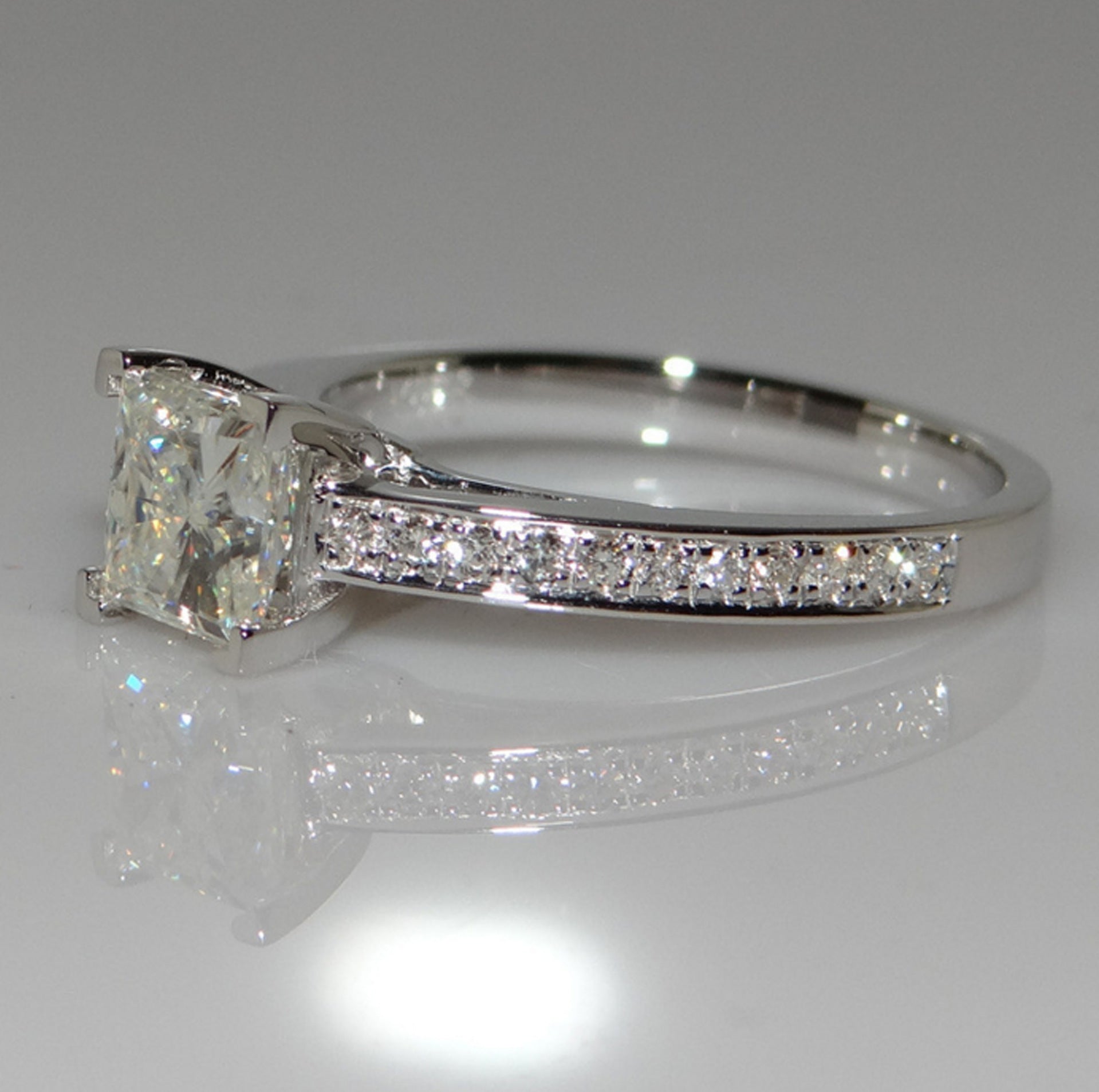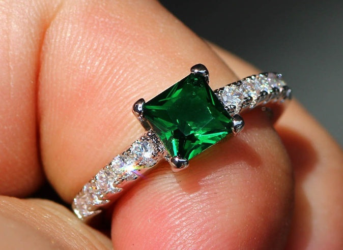 Princess Cut Simulated Diamond Ring Platinum Plated Copper Elegant Four Claw Design Jewelry for Women Prom Red