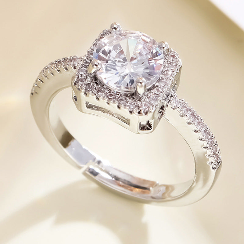 Womens Adjustable Ring Open Square Design With Diamond Accent Copper And White Gold Finish For Everyday Wear Casual
