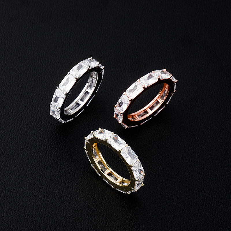 Couple Rings Gold Plated Copper Zircon Square Ring European American Design Trend Simple Elegant Gemstones Jewelry