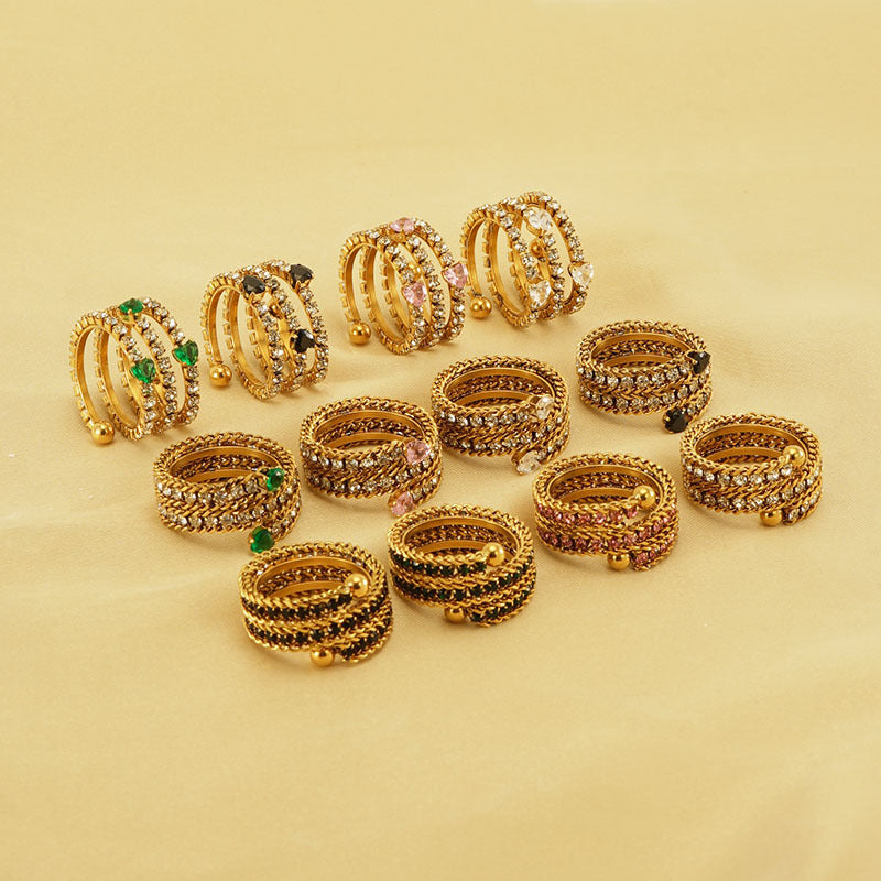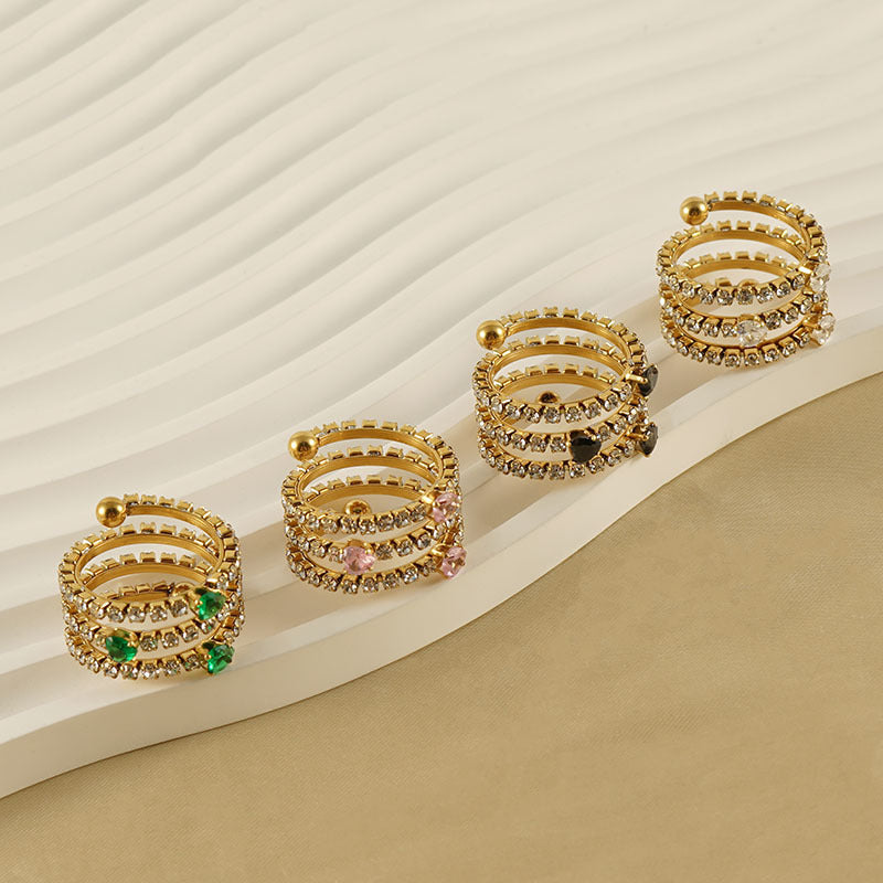 Women's Stainless Steel Ring 18K Gold Plated Full Diamond Multilayer Inlaid Zirconium Geometric Ring Fashion Jewelry for Women Girls Party