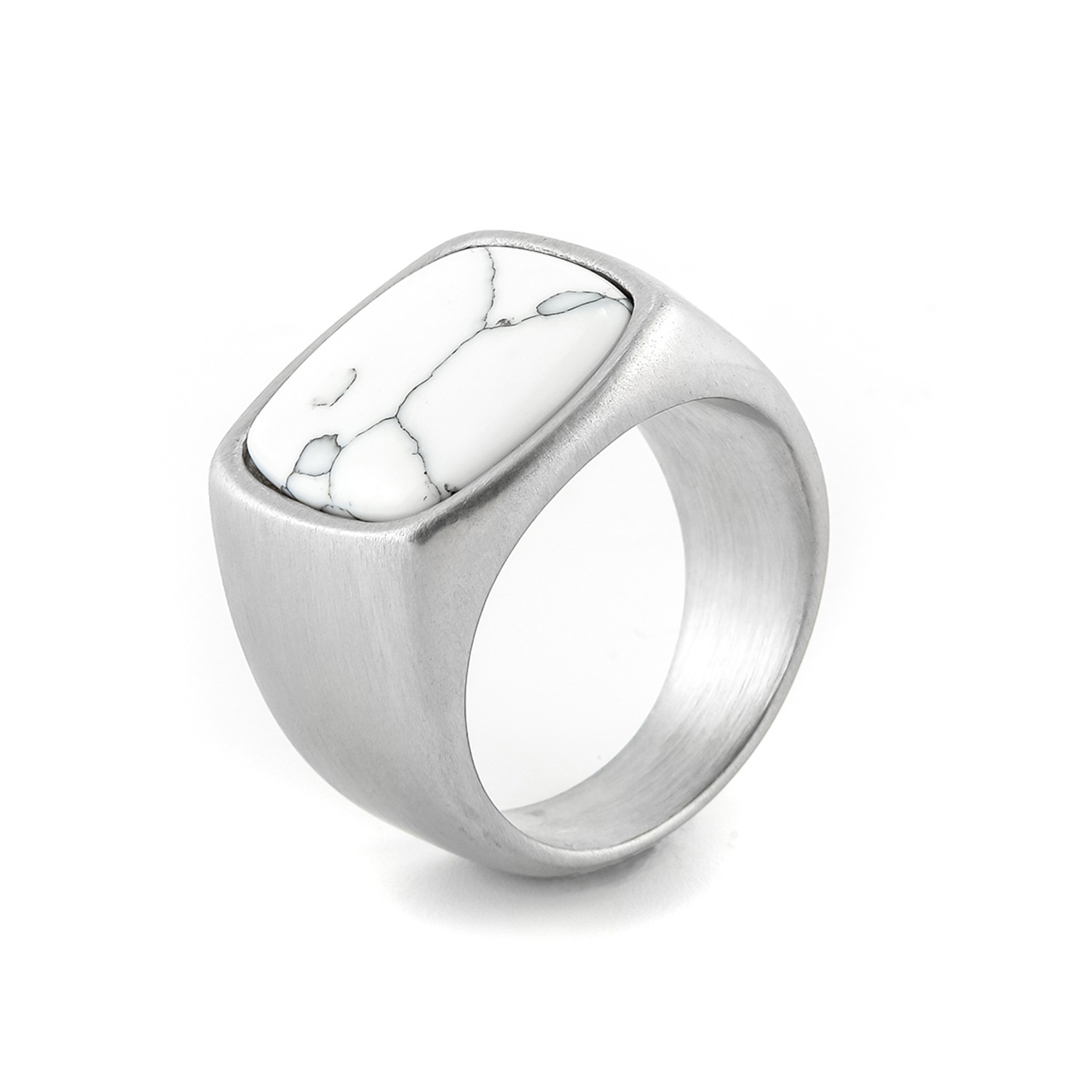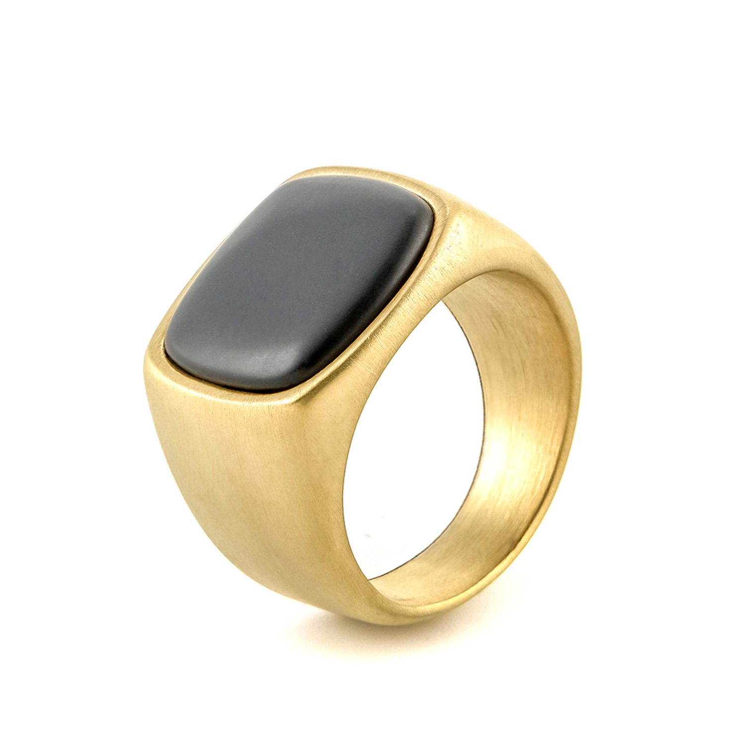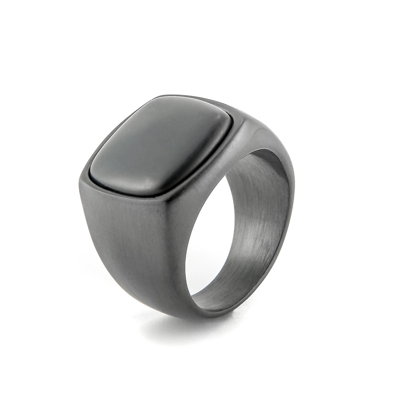 Mens Stainless Steel Ring Black Agate Geometric Design European American Casting Ring Gift For Trade Fairs Now
