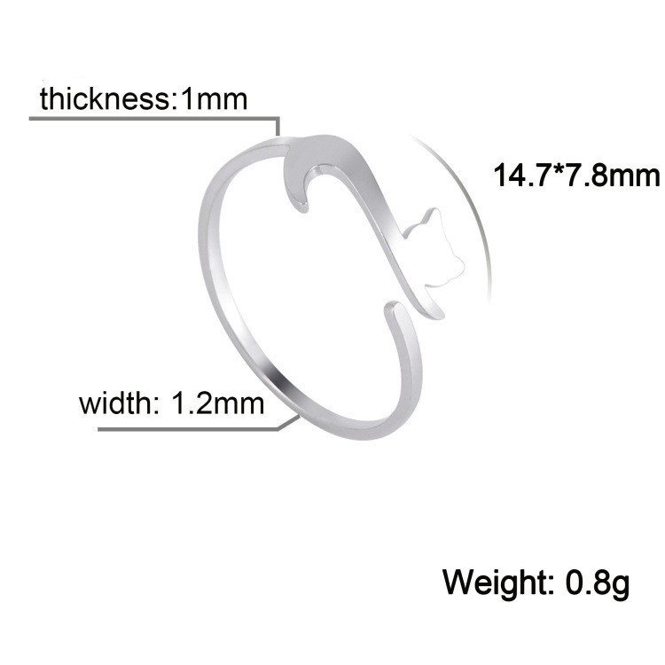 Cat Kitten Ring Stainless Steel Jewelry Adjustable Opening Geometric Design Fashion Ring For Women And Girls Gift