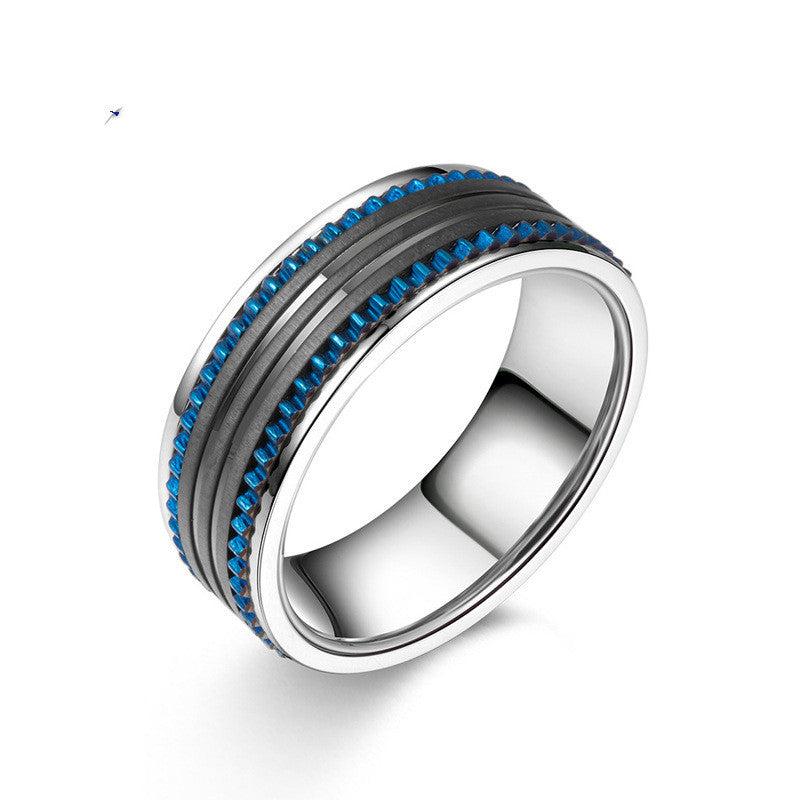 Unisex Two Tone Blue And Black Gear Ring Stainless Steel European And American Style Jewelry Sizes 7 To 12 Men