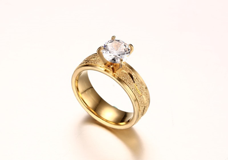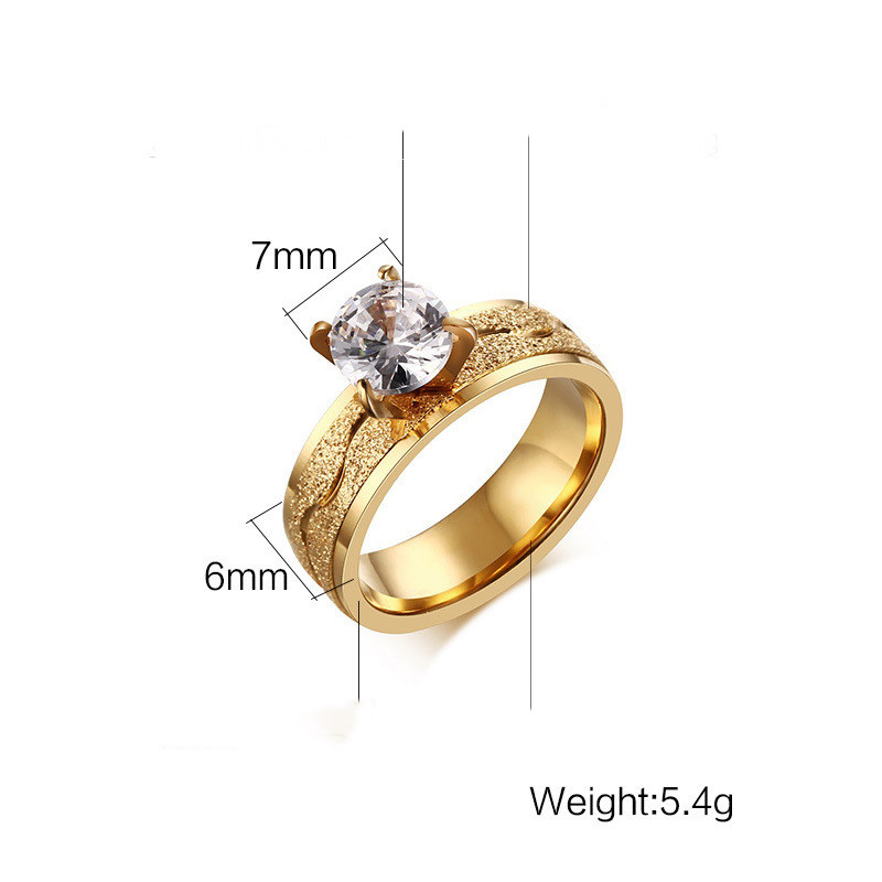 Stainless Steel Gold Plated Sandblasted Four Claw Zircon Ring For Women Fashion Accessory Elegant Statement Piece