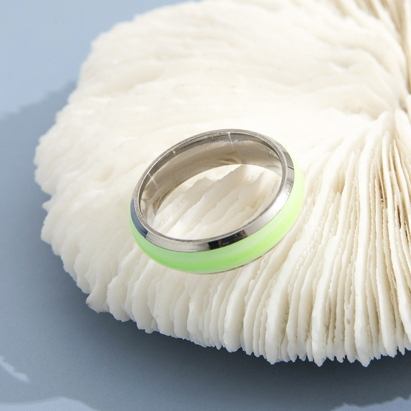 Stainless Steel Luminous Ring Retro Geometric Emerald Green Gem Index Finger Ring Fashion Jewelry Gift For Her