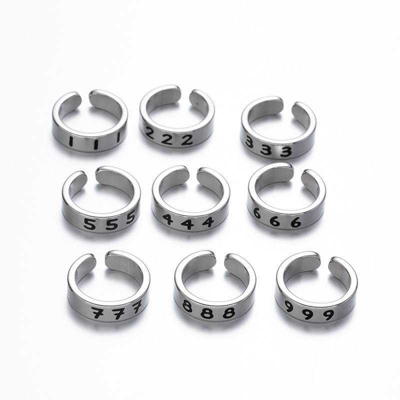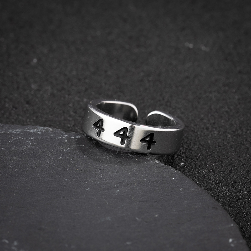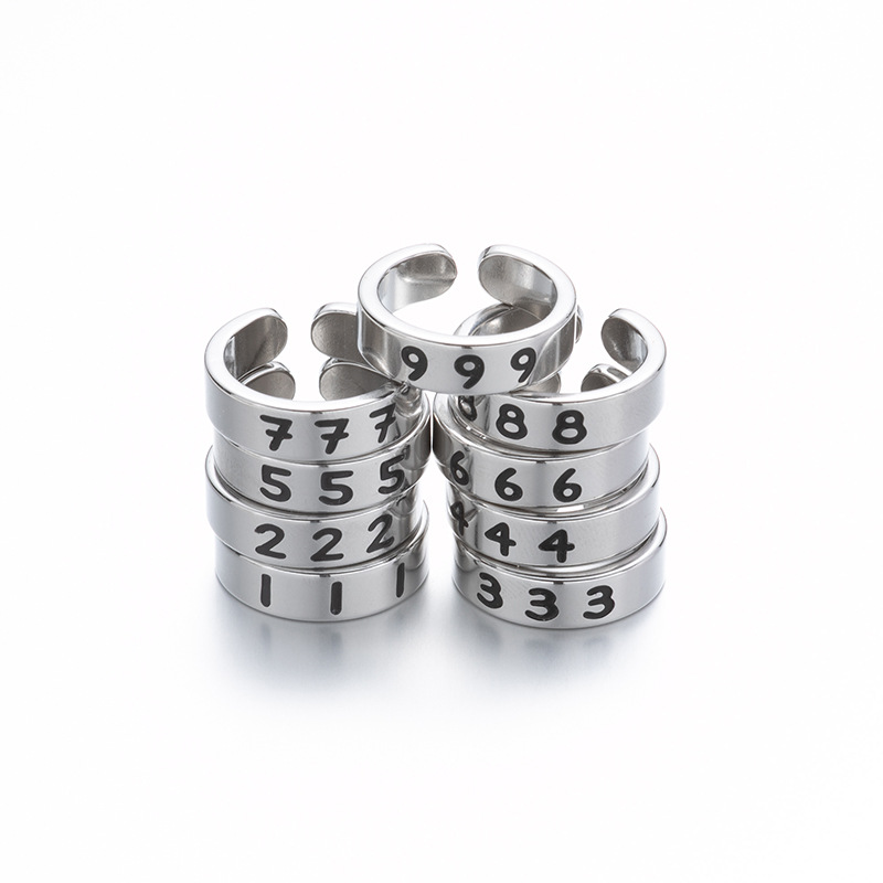 Womens Stainless Steel Ring Vintage Lucky Number Silver Text Ring Fashion Statement Jewelry High Quality Design