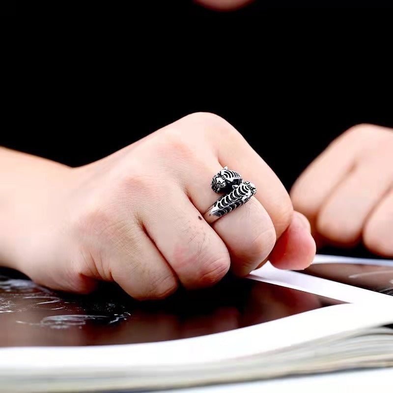 Stainless Steel Mens Tiger Head Ring With Adjustable Opening Animal Pattern Accessory Material Stainless Steel White