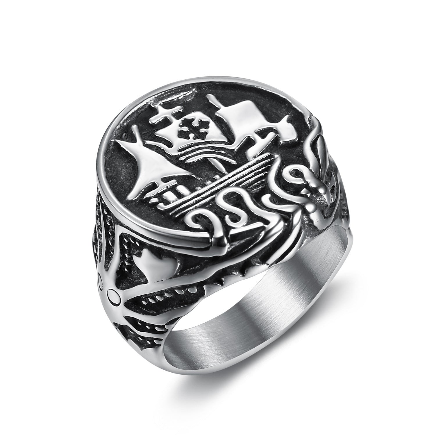 Unisex Stainless Steel Octopus Ring and Sailboat Nautical Ring Ocean Sea Life Statement Ring for Men or Women Black Accent Band