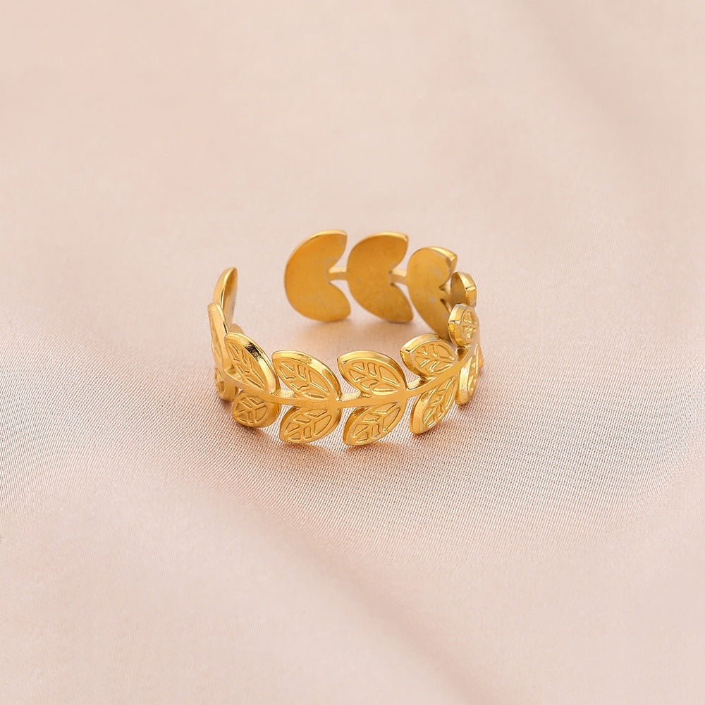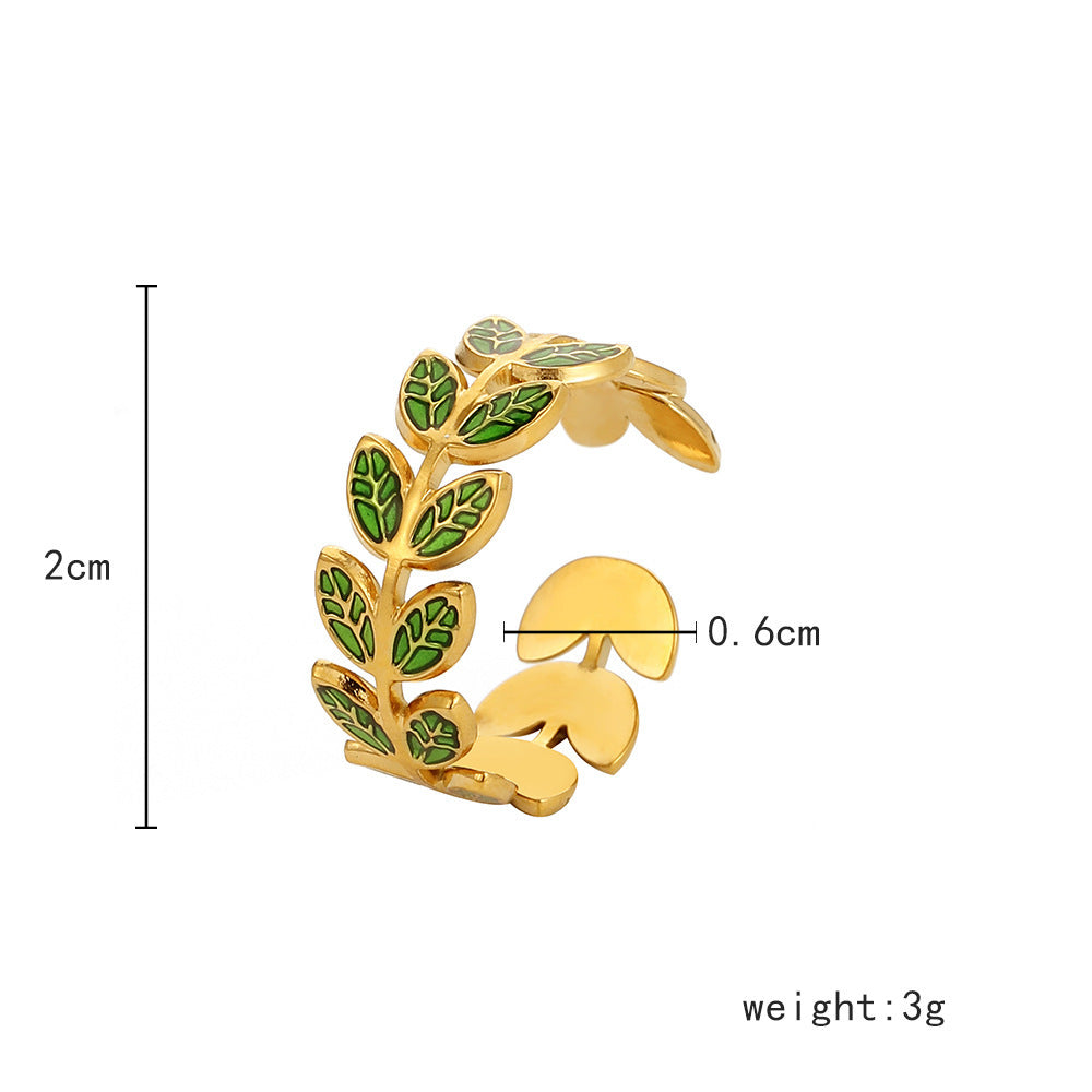 Womens Stainless Steel Wheat Ring Adjustable Open Design With Electroplated Emerald Green Finish Jewelry Gleams