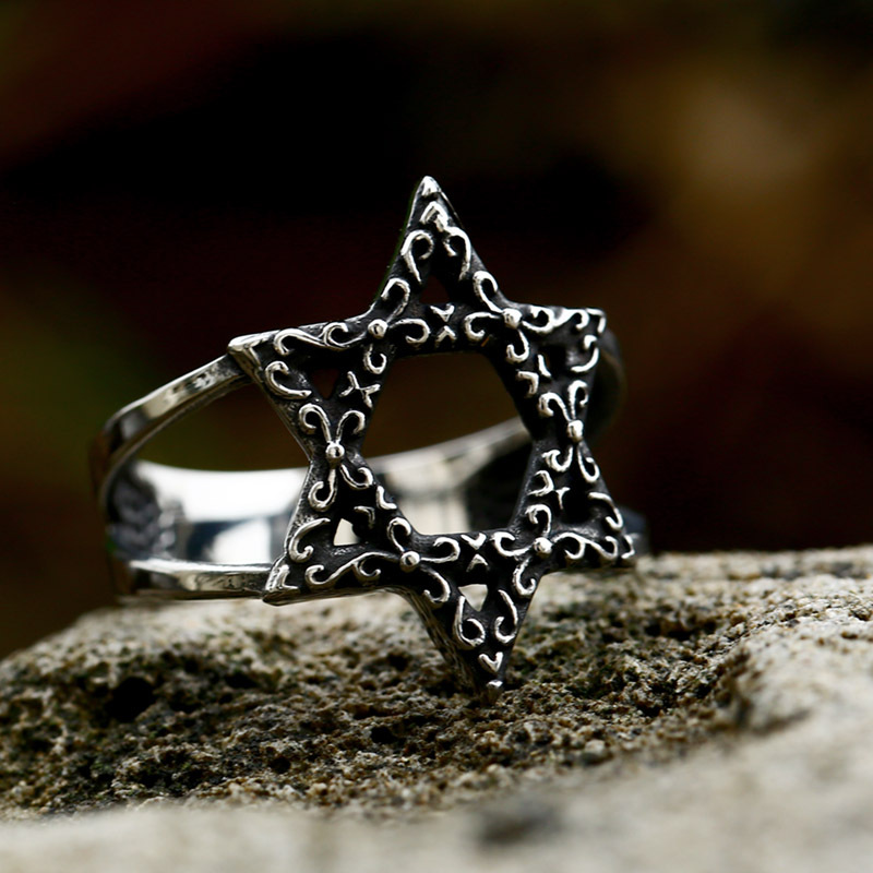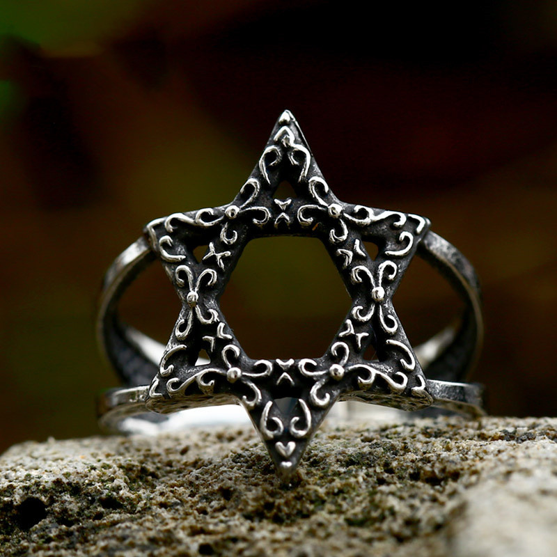 Stainless Steel Hexagram Ring Retro Style Polished Finish Jewelry for Men Women US Sizes 7 to 13 Everyday Use