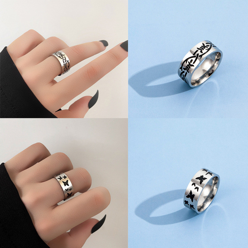 Stainless Steel Ring Punk Rock Style Flame Butterfly Accent Metal Jewelry for Everyday Wear Suitable for Men Women