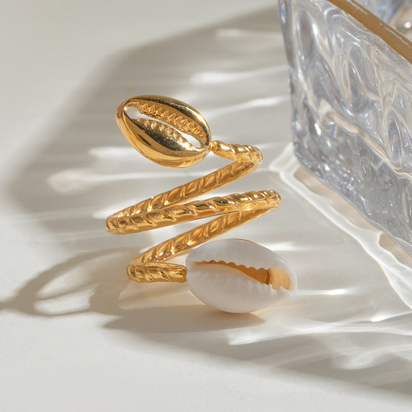Stainless Steel Open Ring With Shell Zodiac Animal Design For Women Beach Vacation Accessory Everyday Wearable