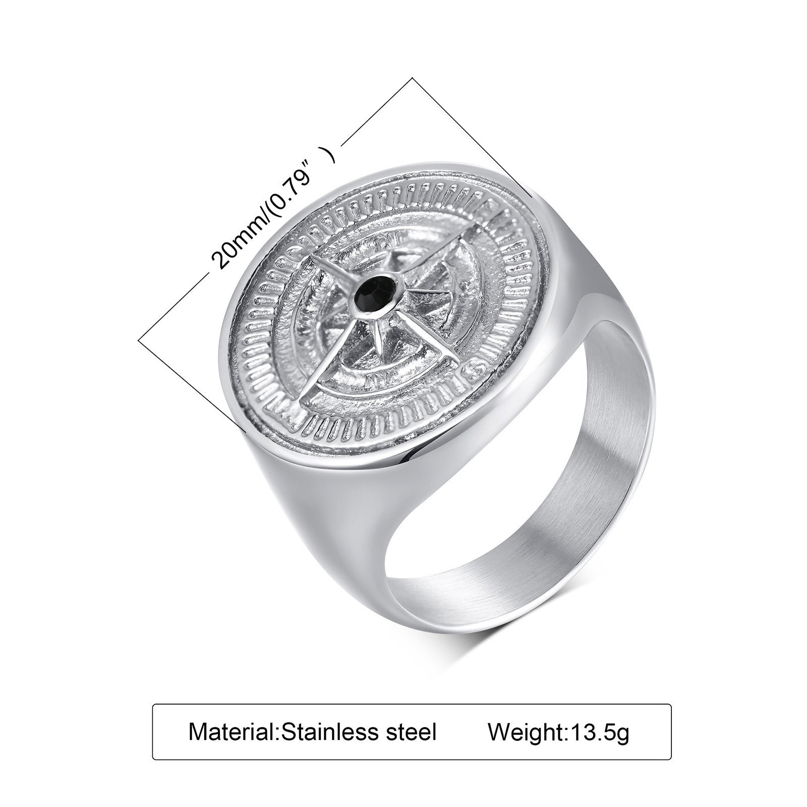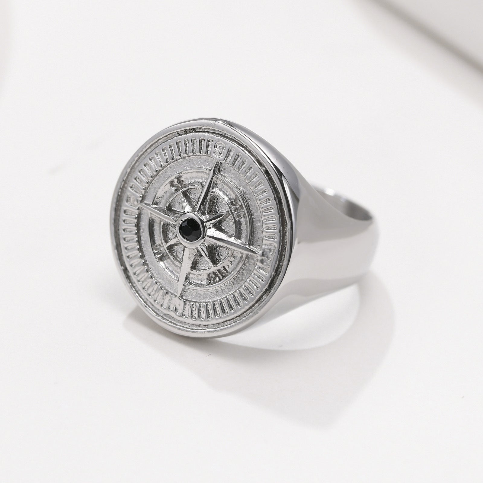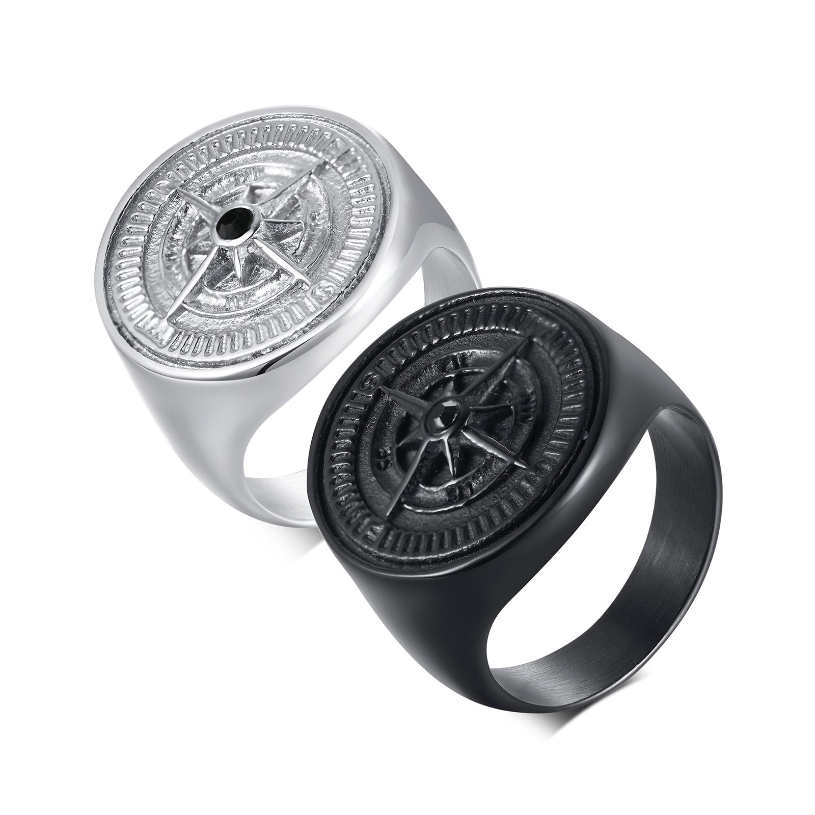 Stainless Steel Compass Ring Black Round Mens Fashion Accessory Durable Lightweight Gift Idea for Him Everyday