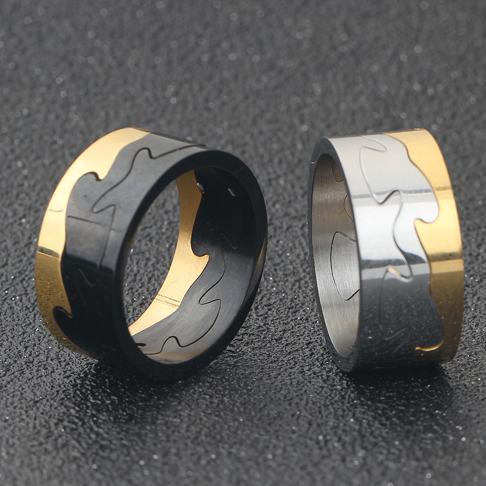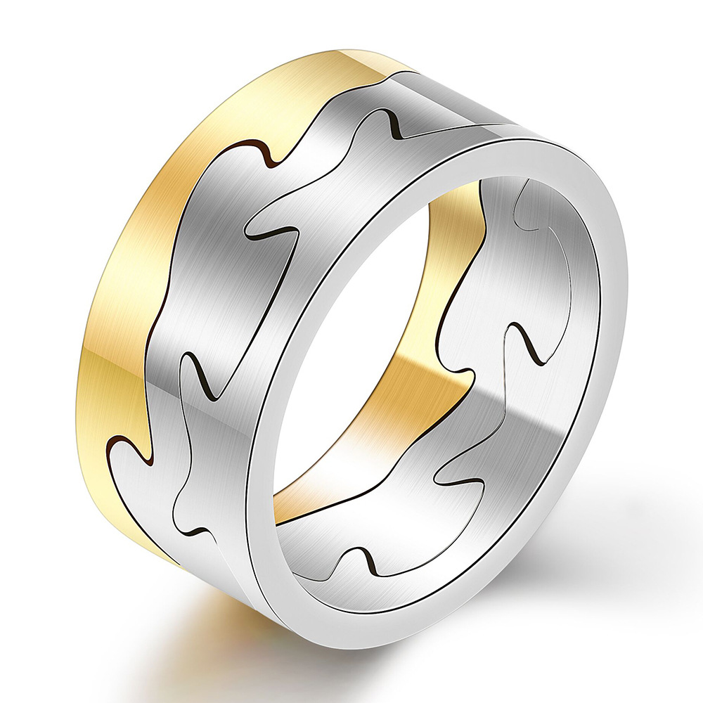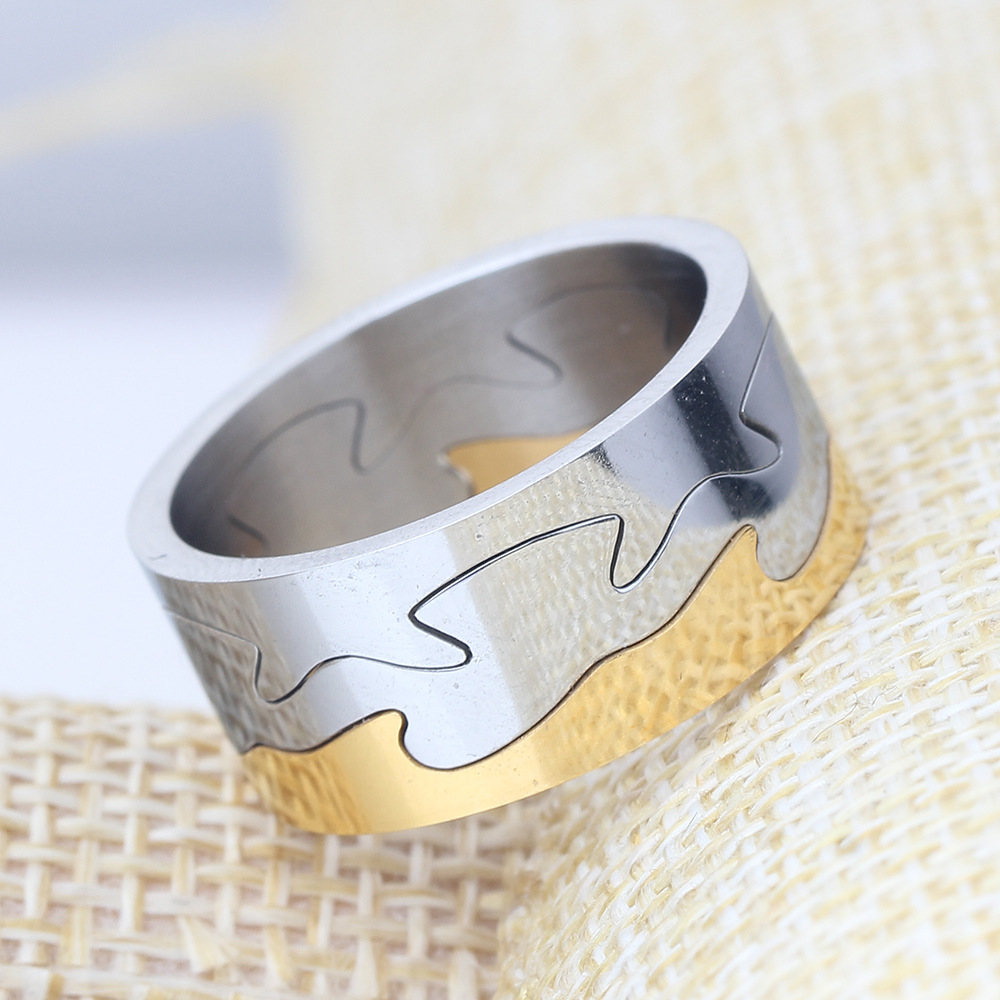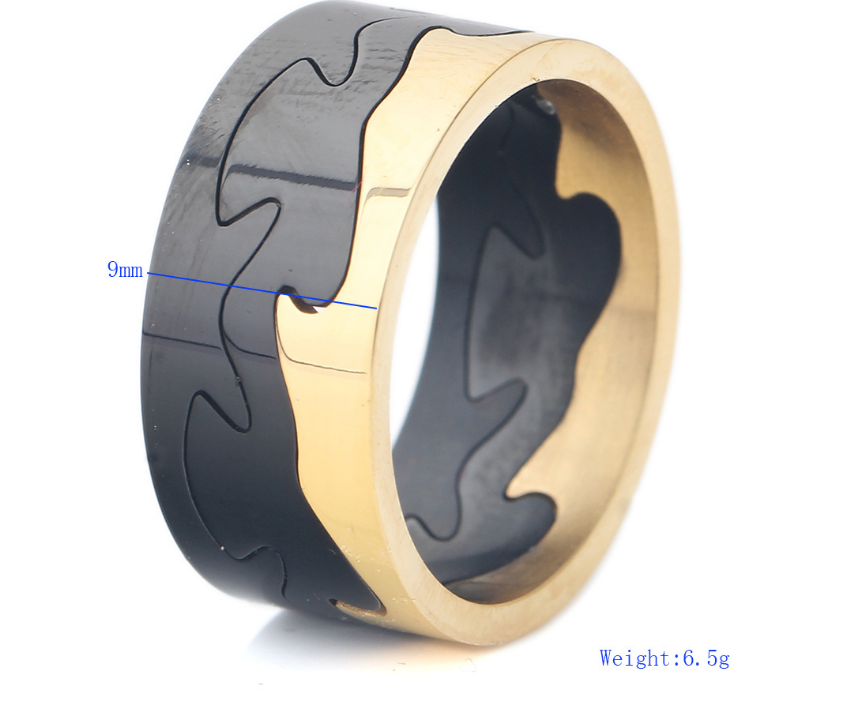 Stainless Steel Two Tone Stitching Ring Black Gold Steel Gold Unisex Size 8 9 10 11 Durable Hypoallergenic Comfort Fit