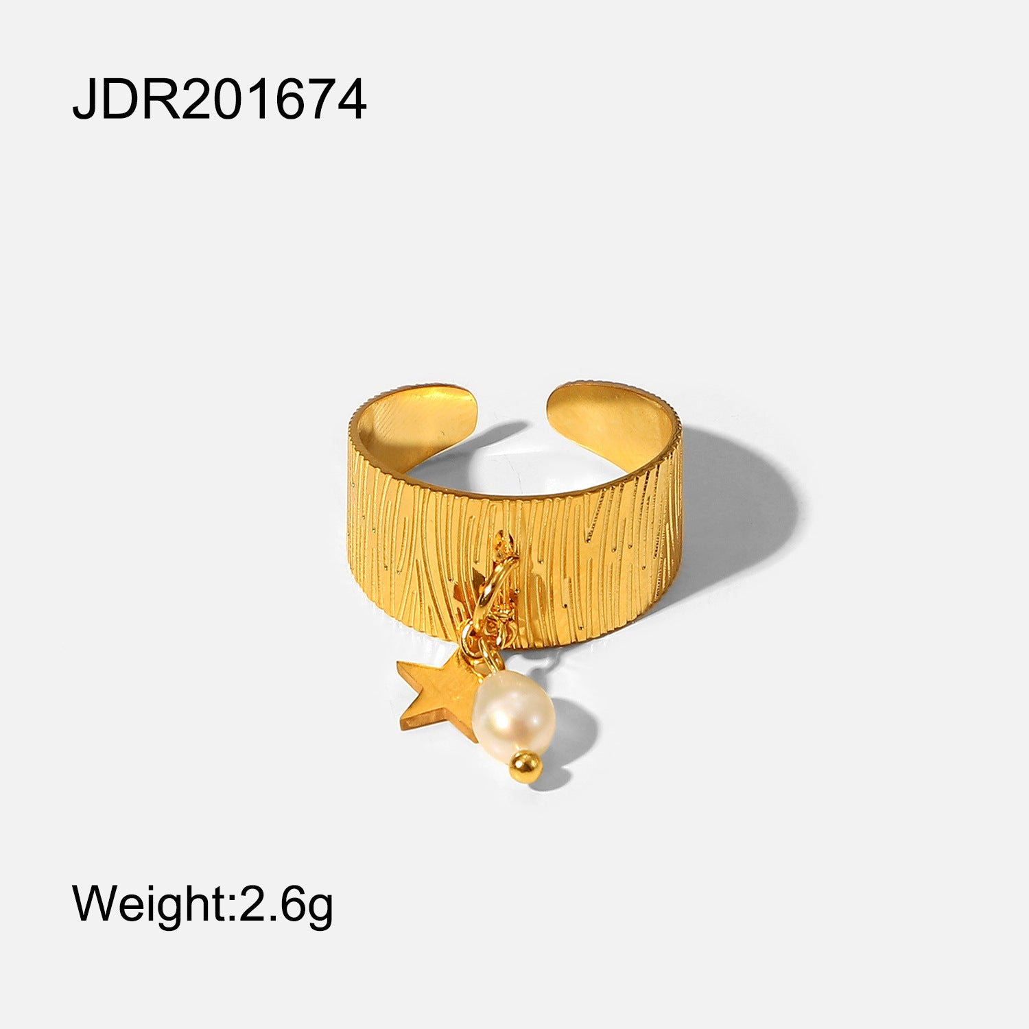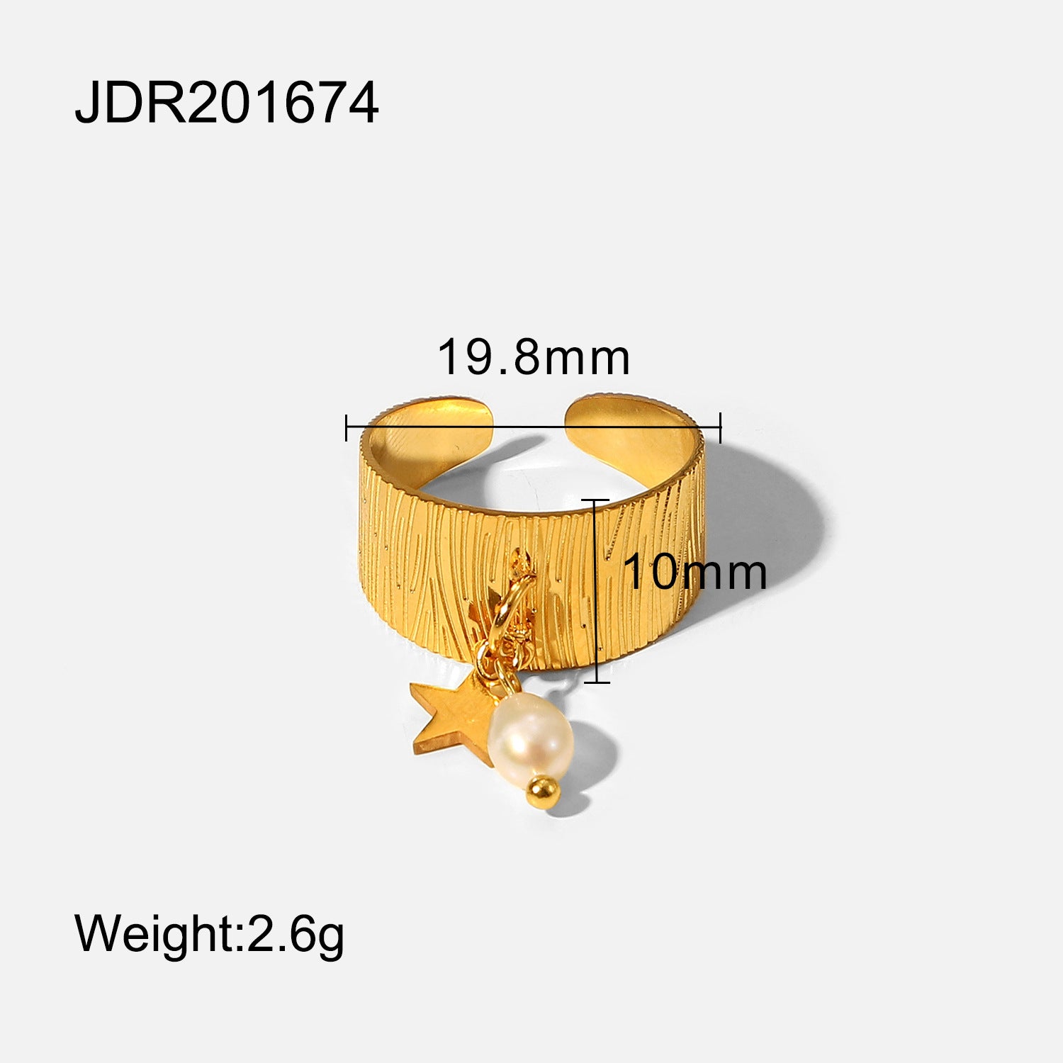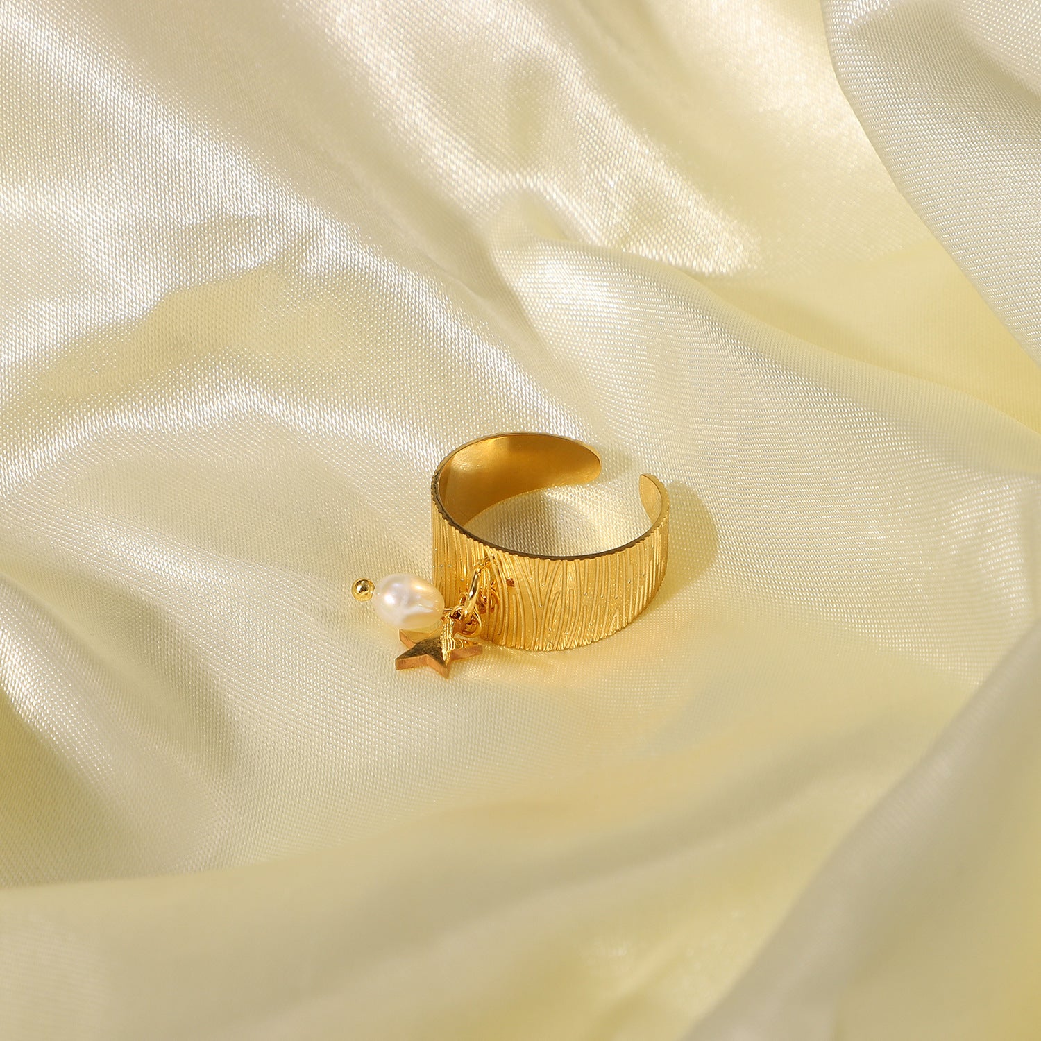 Women's Stainless Steel Ring with Pearl Electroplated Adjustable Opening Fashion Jewelry Finger Ring Perfect Gift for Her