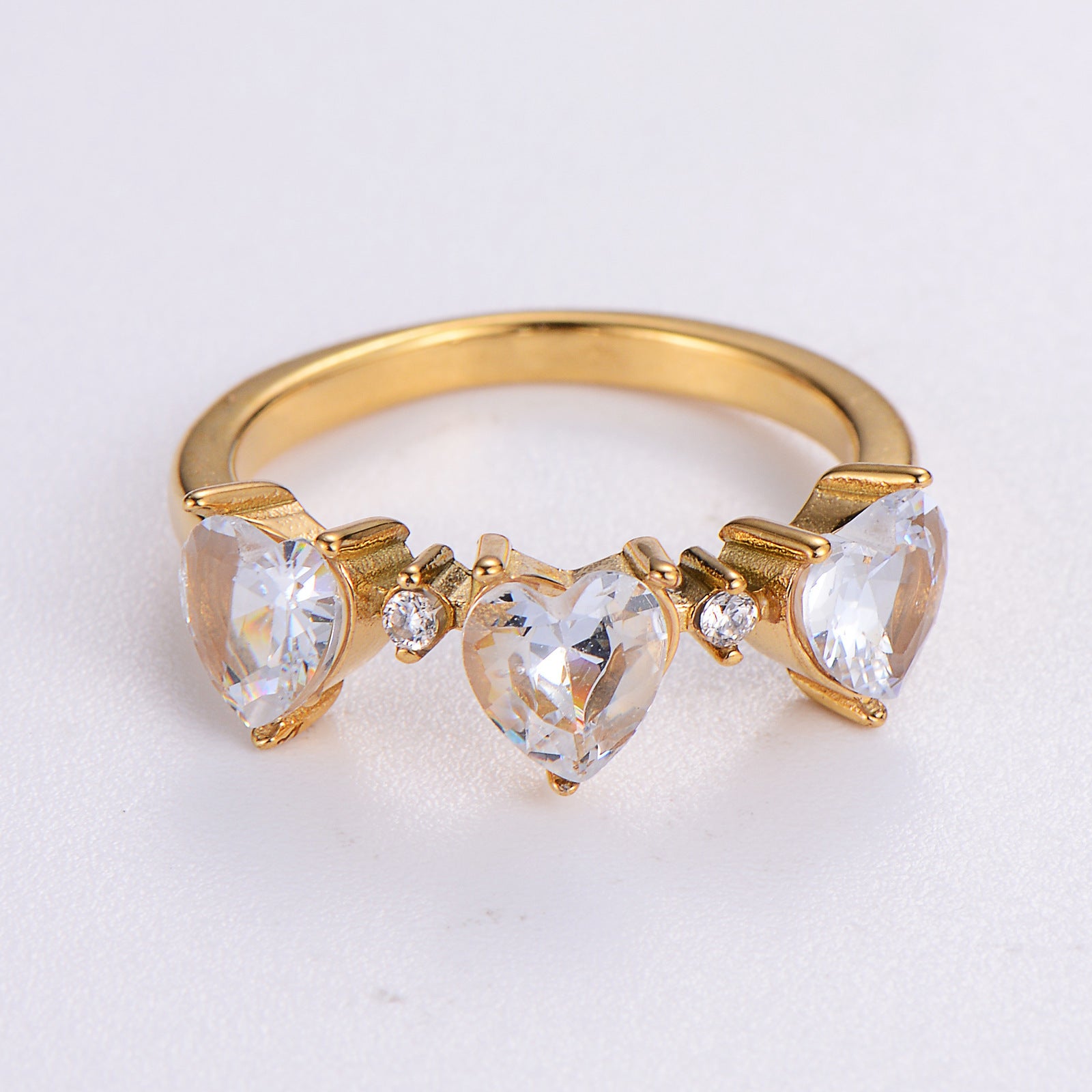 Womens Stainless Steel Heart Ring with Zircon Stone Electroplated Gold or Rose Gold Finish Heart Shape Ring for Her