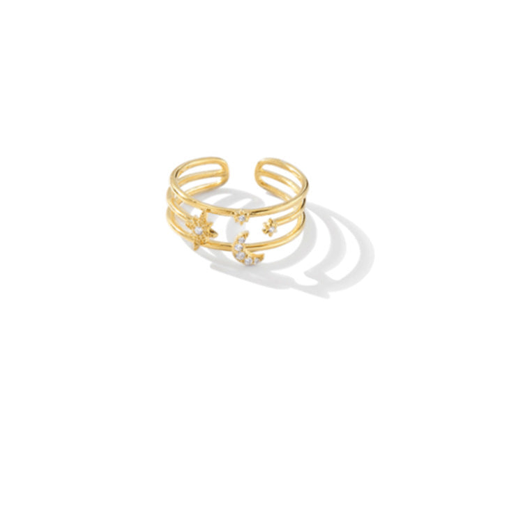 Star Moon Ring Silver Korean Style Inlaid Crystal Text Letters Jewelry Adornment for Wedding Gift and Modern Romance