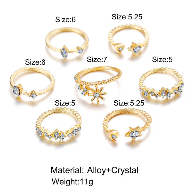 Womens Star Moon Ring Set Seven Piece Diamond Crystal Rings