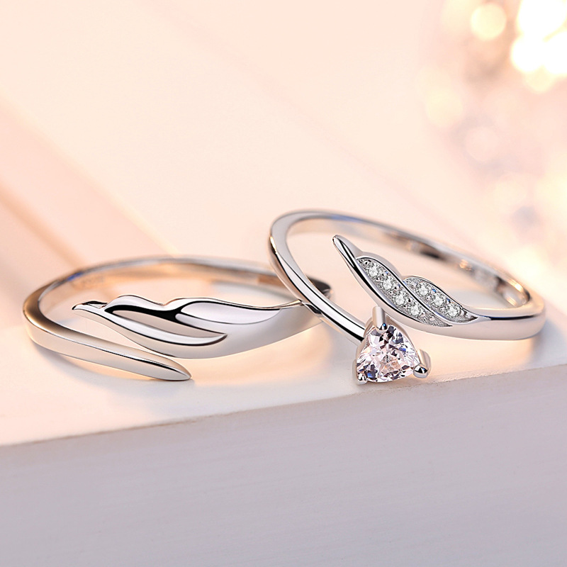 Silver Angel Feather Wings Ring Men Women Adjustable Opening Couple Rings Korean Jewelry Cupid Feather Feather