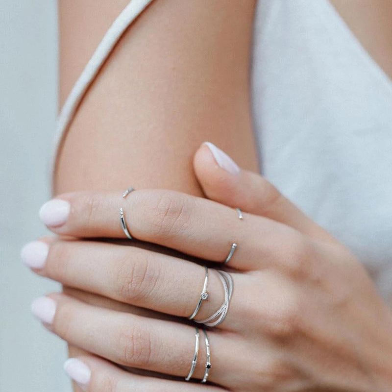 Womens Sterling Silver Ring with Cubic Zirconia X Cross Design Simple Band Ring for Women Girls Fashion Jewelry Platinum Ring and Gold Ring