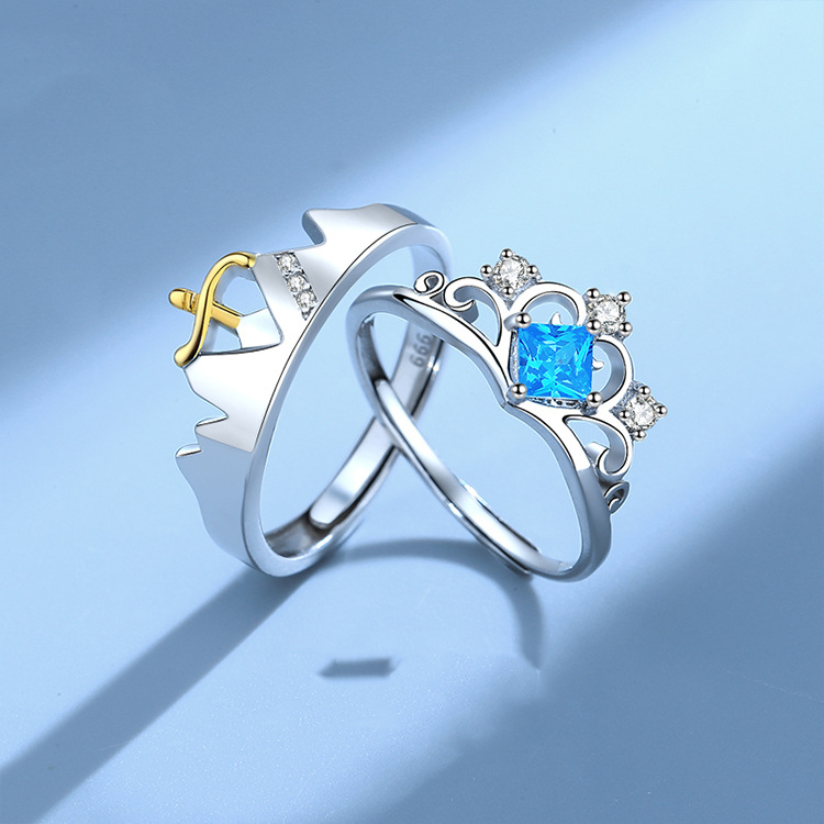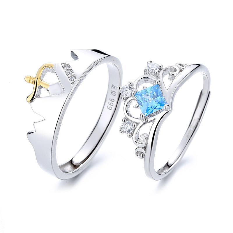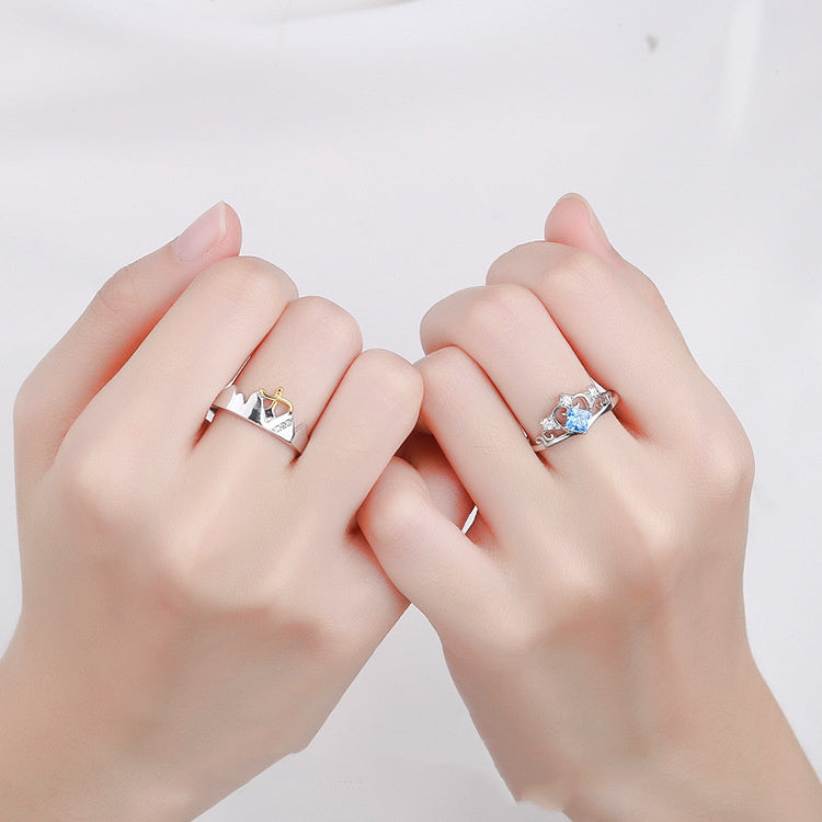 Couple Zircon Rings For Him And Her Adjustable Korean Style Matching Promise Ring Set Elegant Gift For Couples