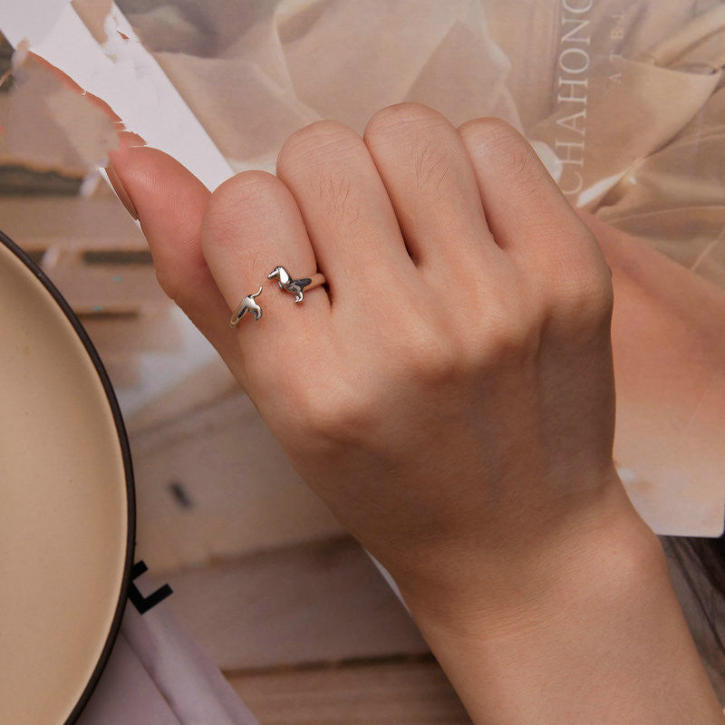 Sterling Silver Dachshund Ring Adjustable Oxidized S925 Geometric Sausage Dog Jewelry Gift For Sausage Dog Fan