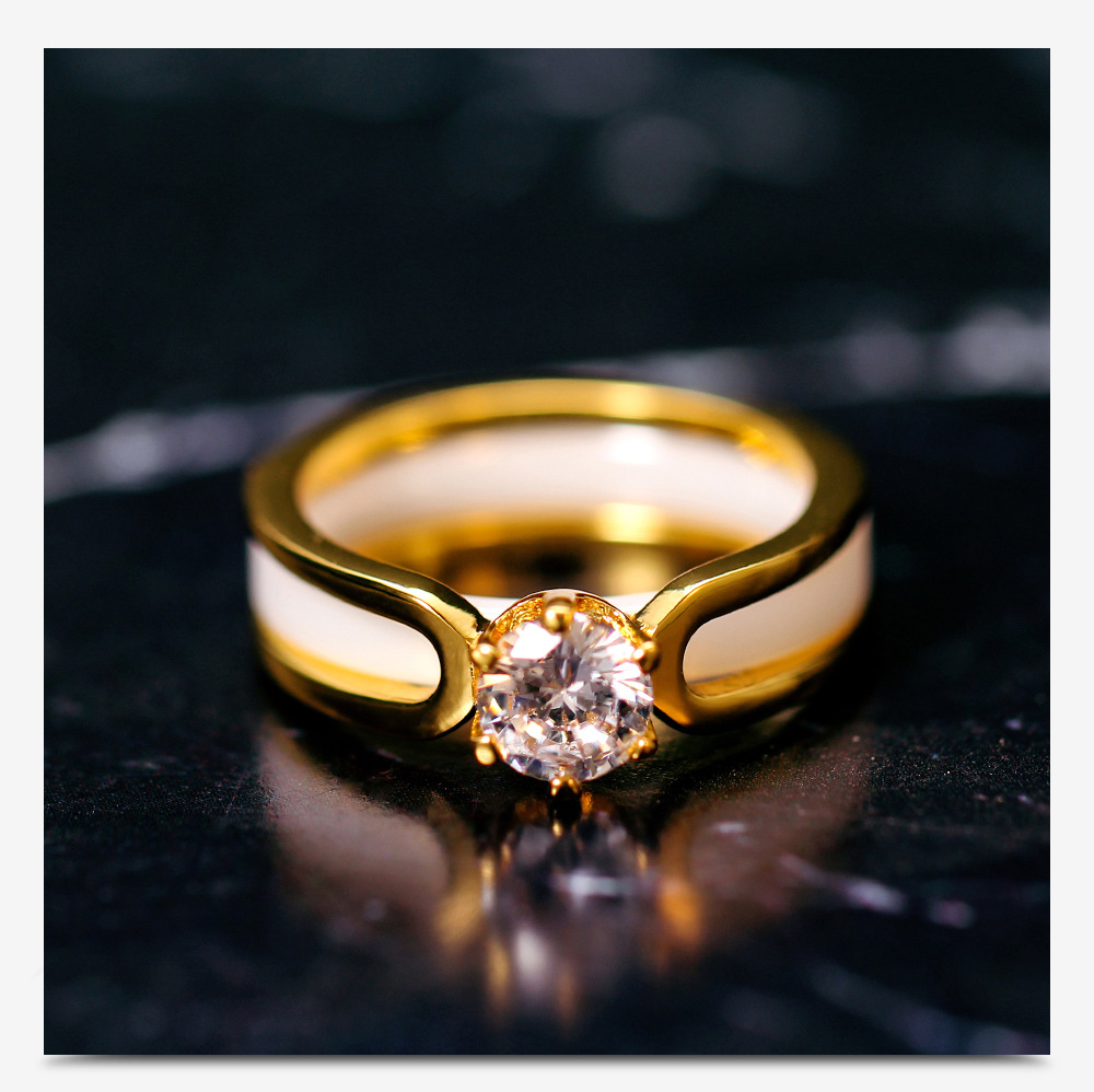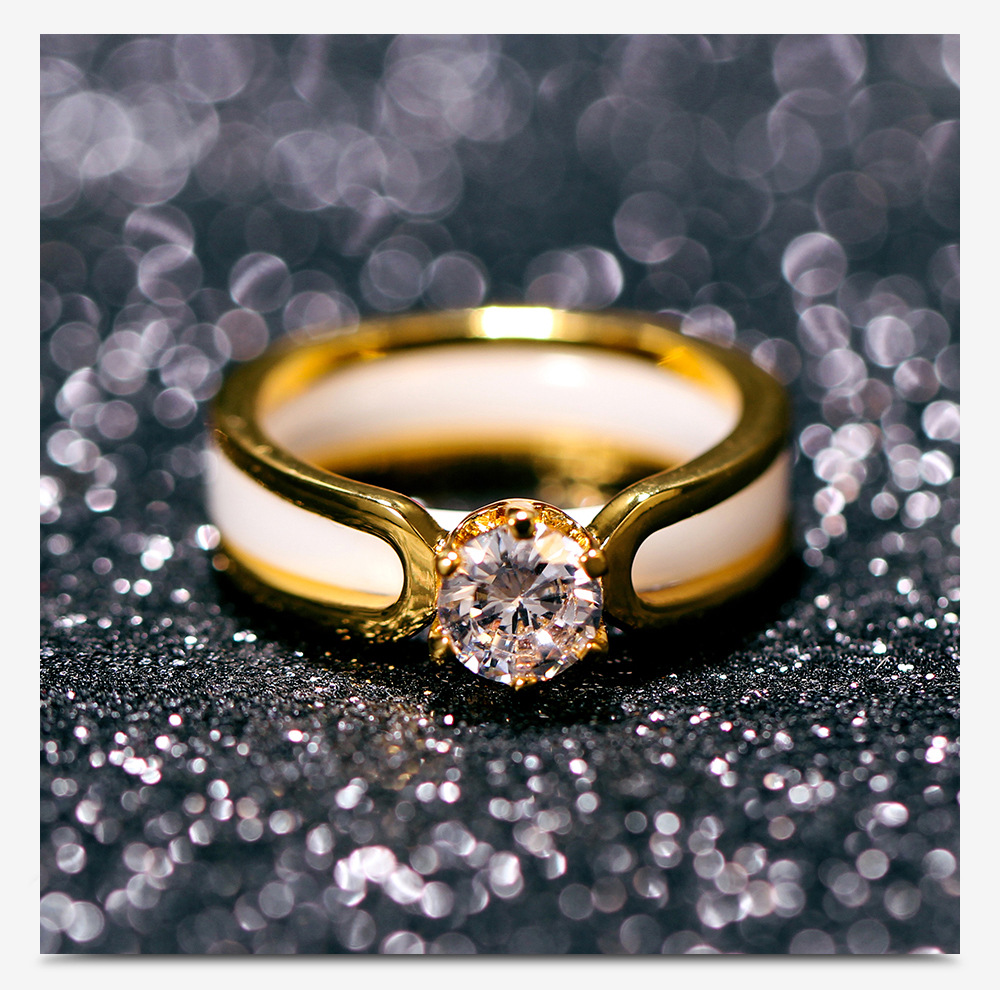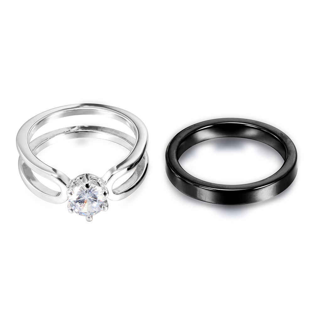 Womens Ceramic Ring Set Geometric Rings Set Gold Plated Inlaid Gemstones Semi Precious Stones Black Split Ring