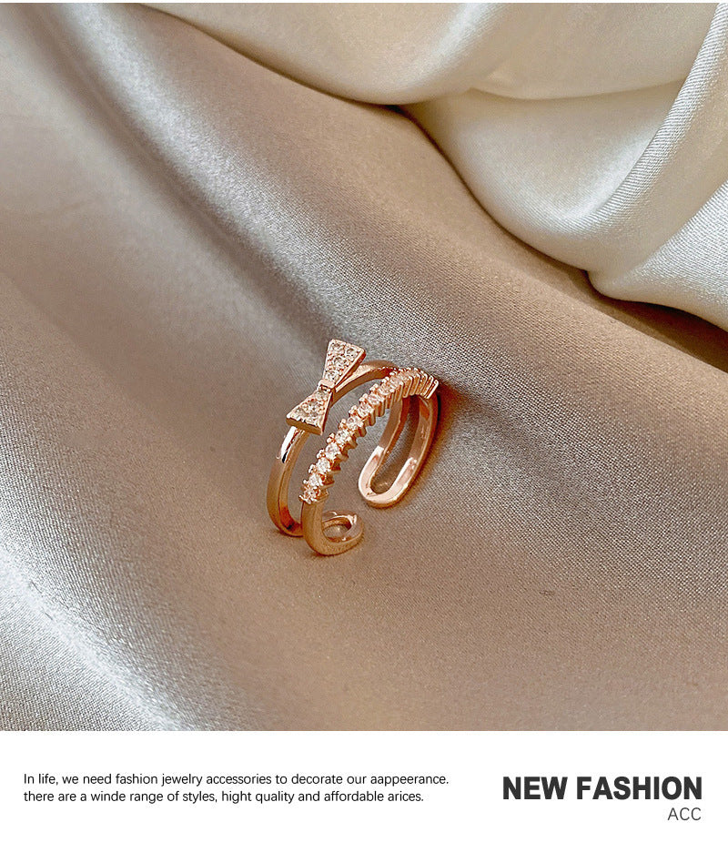Womens Gold Plated Adjustable Ring With Bow Pearls And Rhinestones Korean Geometric Design Ring Jewelry Trend