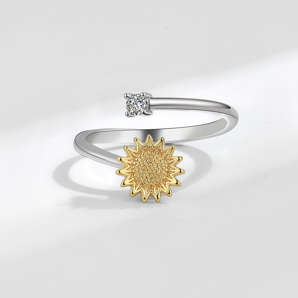 Womens Adjustable Sunflower Ring Copper Open Rotatable Jewelry Fashion Geometric Flower Ring For Women Daily Wear
