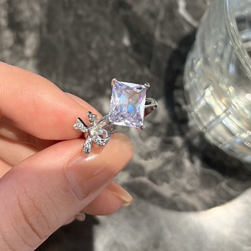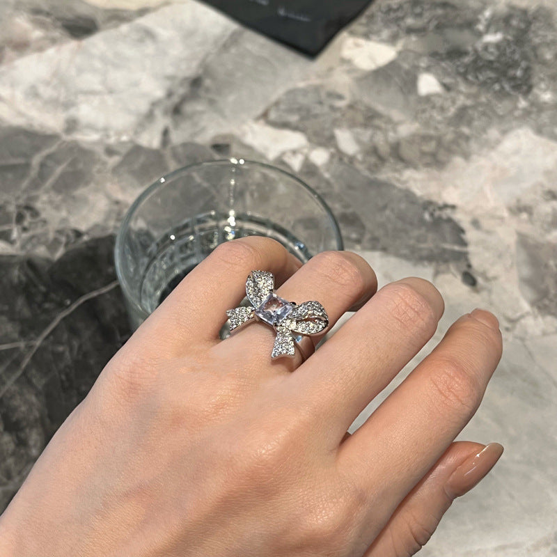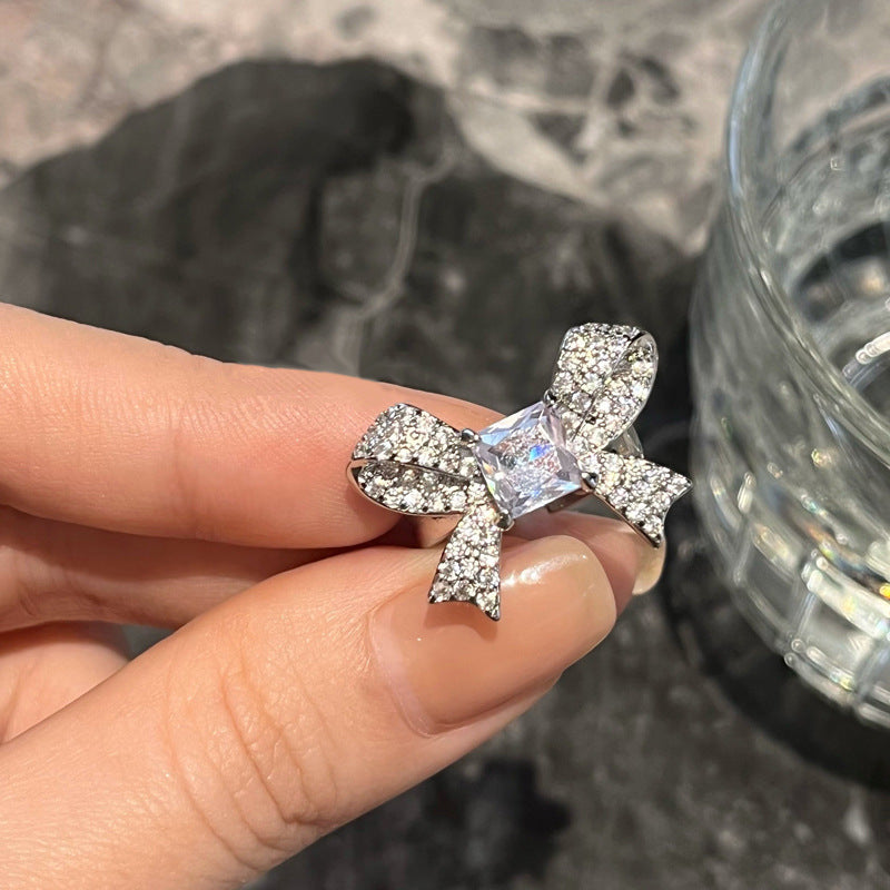 Bowknot Ring With Rhinestones Cube Sugar Copper Adjustable