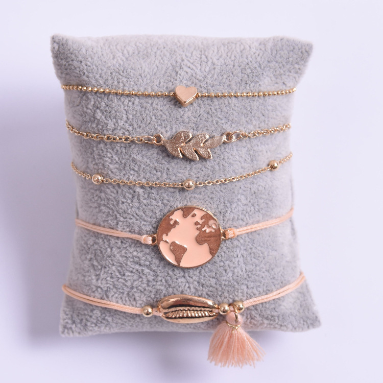 Unisex Alloy Tassel Bracelet Set Chain Braided Rope With Leaf Charm Fashion Bracelet Individually Packed Today