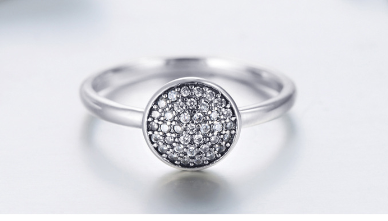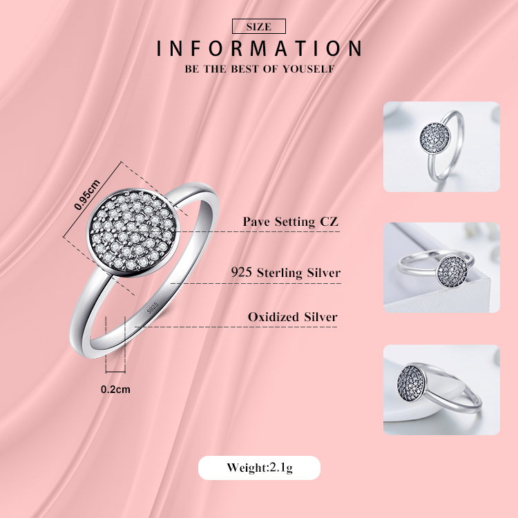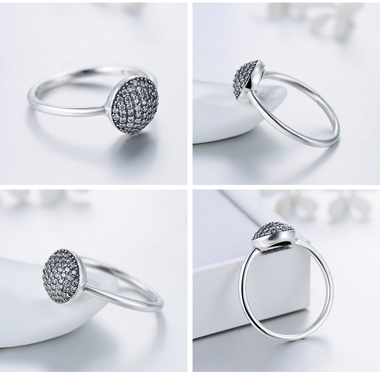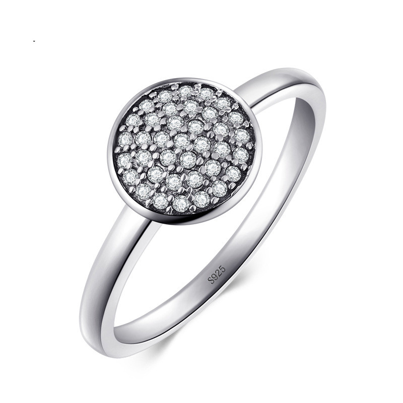Silver Round Ring Micro Inlays For Women Retro Style Gift