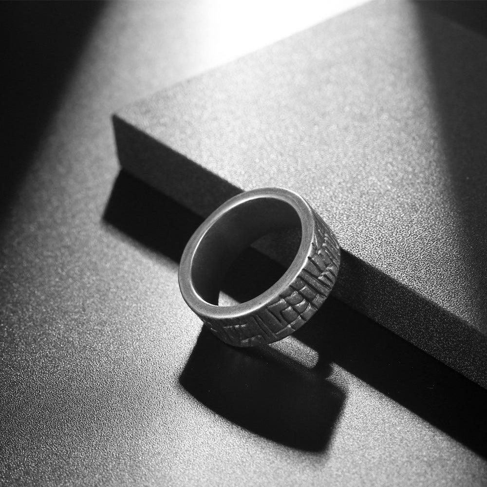 Mens Titanium Steel Ring Vintage Geometric Ring Polished Metal Ring Retro Ring for Men Tail Ring White Bronze Ring Temperament Ring and Fashion Jewelry