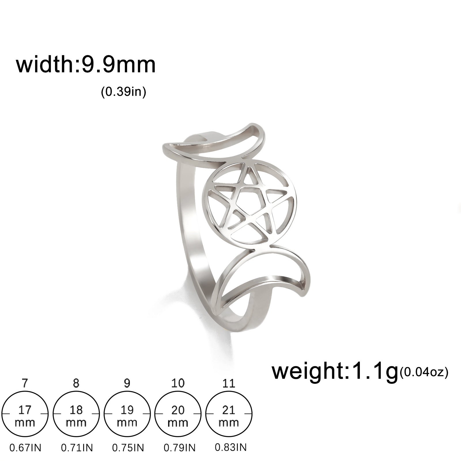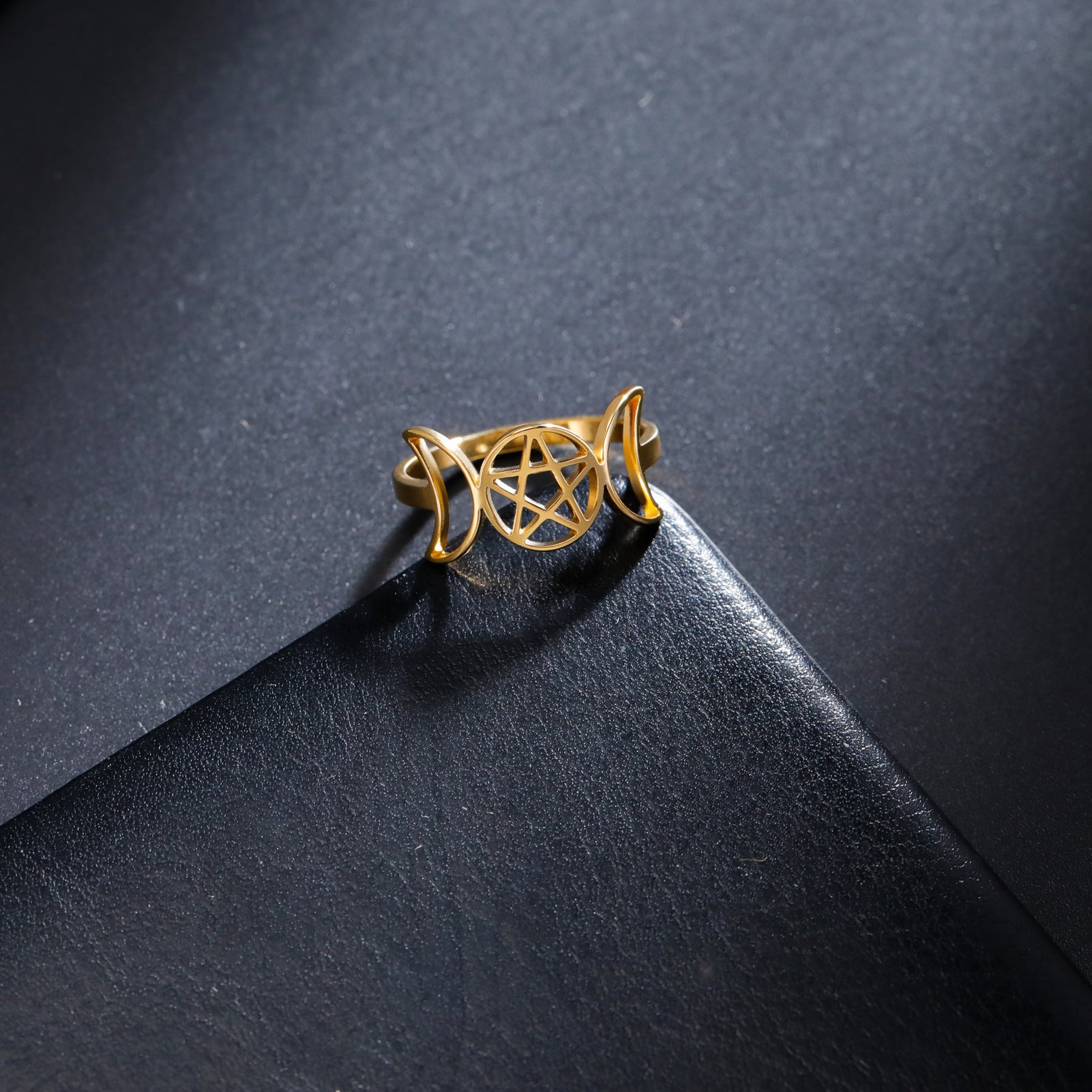 Unisex Double Moon Pentagram Ring Stainless Steel Electroplated Gold Band Jewelry Size 7 8 9 10 11 Modern Touch