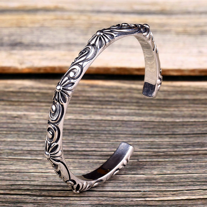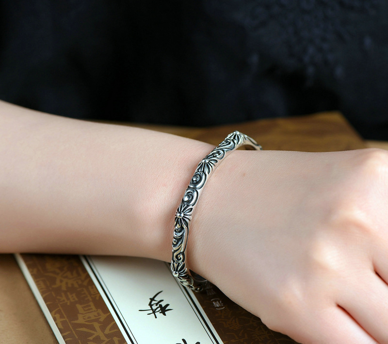 Thai Silver Distressed Pattern Bracelet Vintage Silver Plated Women Fashion Accessory For Women Vintage Appeal