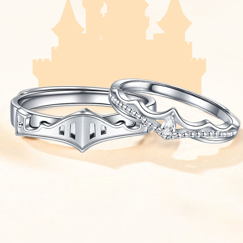 Sterling Silver Princess And Knight Rings Diamond Cartoon Character Couple Rings Holiday Gift 925 Silver With Gems