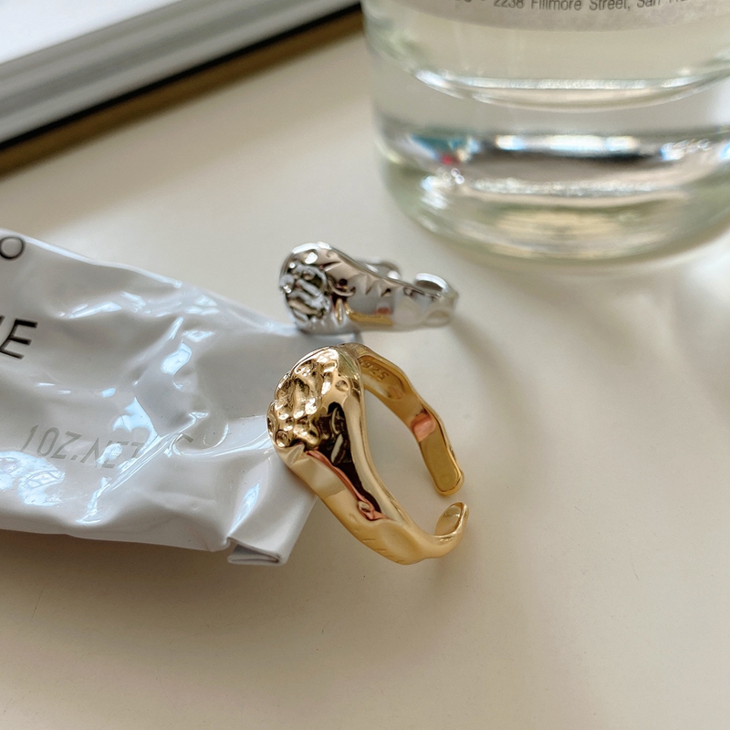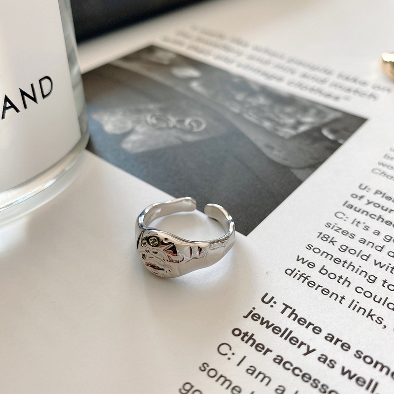 925 Sterling Silver Thick Ring Irregular Silver Inlay Statement Ring Korean Trendy Design Ring For Women And Girls