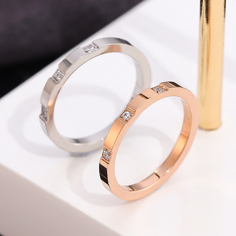 Three Diamond Titanium Steel Ring With 18k Rose Gold Plating And Zircon Inlay For Women Jewelry Elegant Design