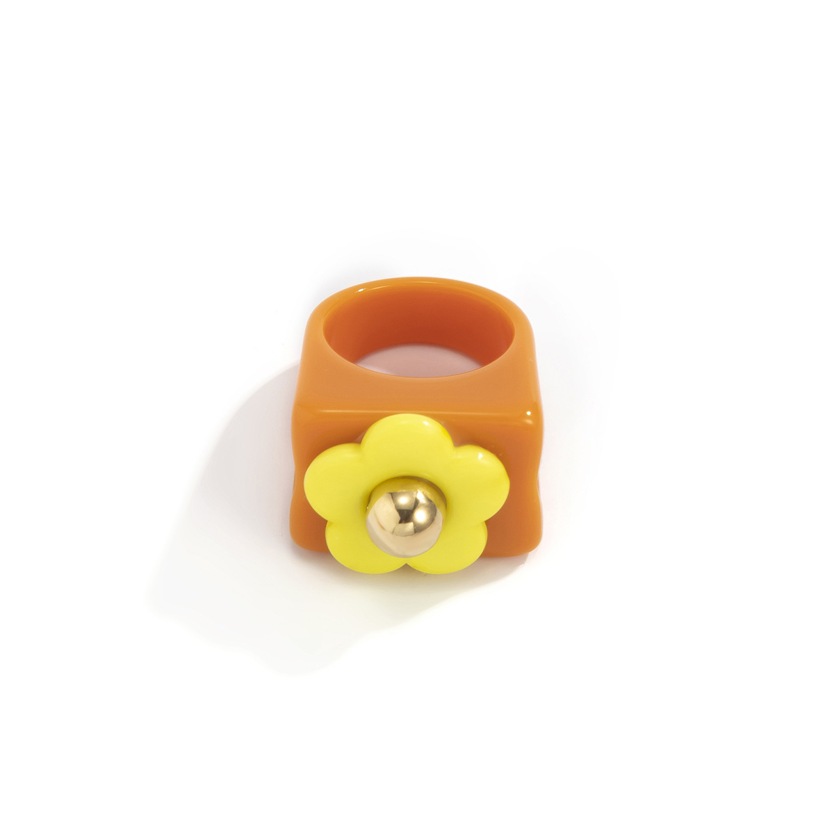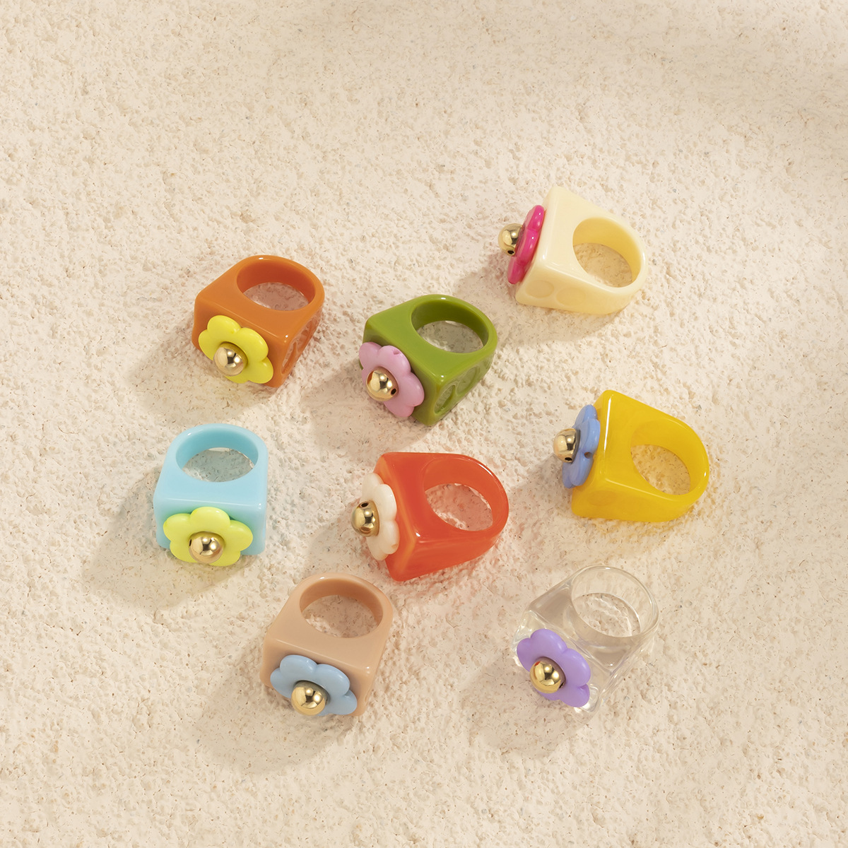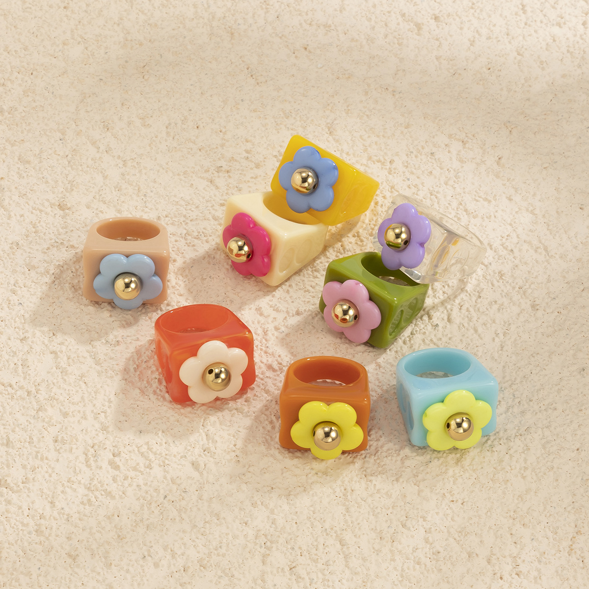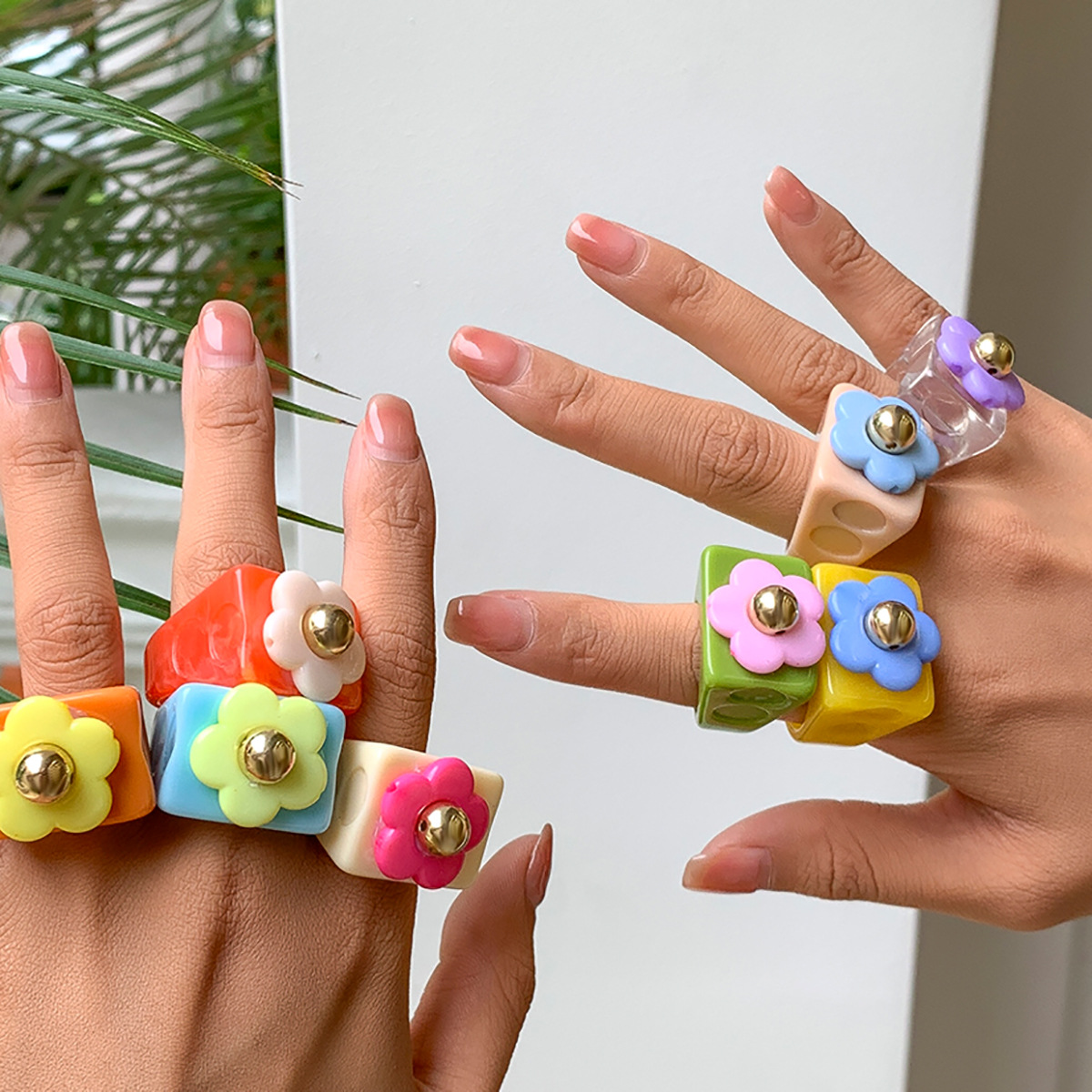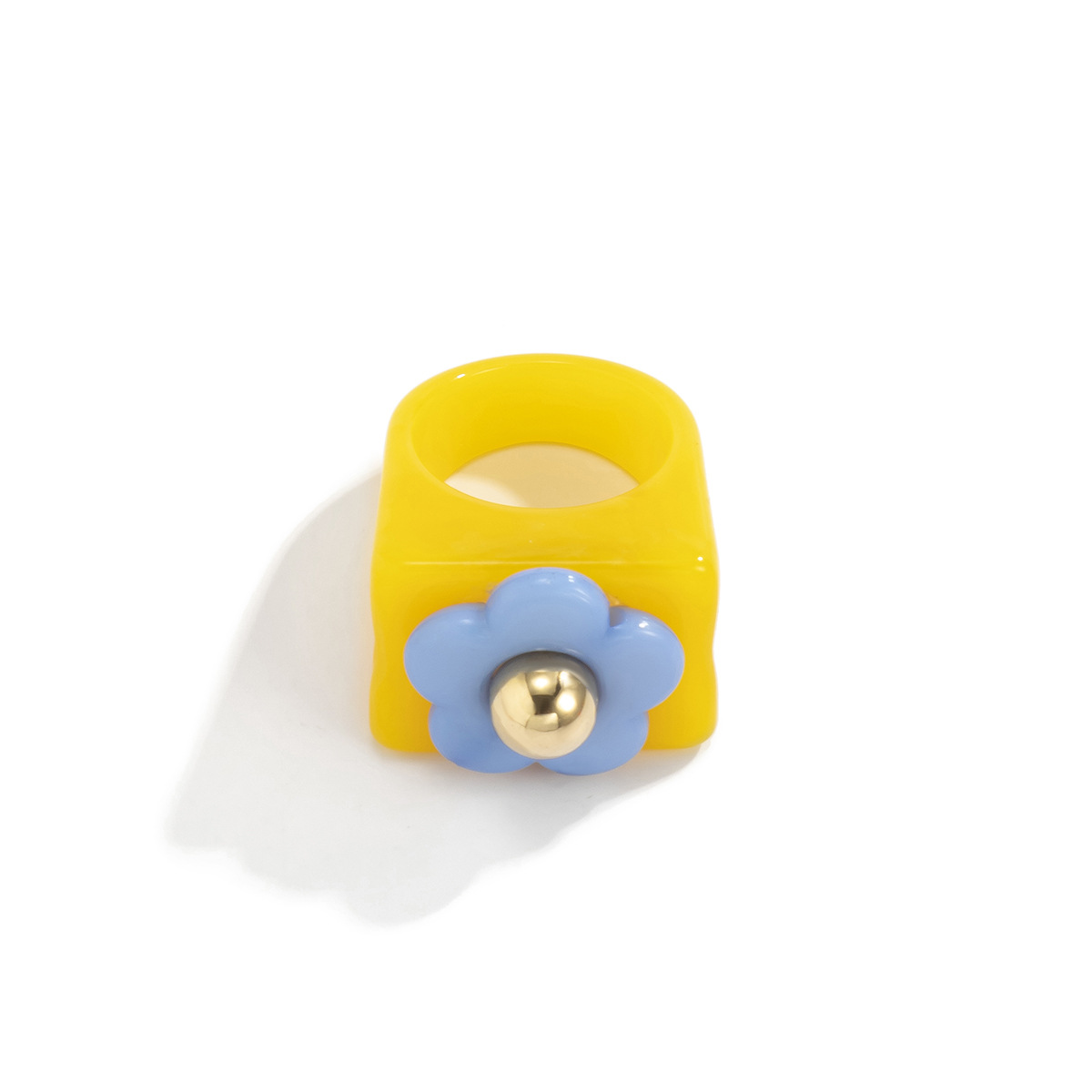 Womens Flower Resin Ring Wide Floral Statement Fashion Ring
