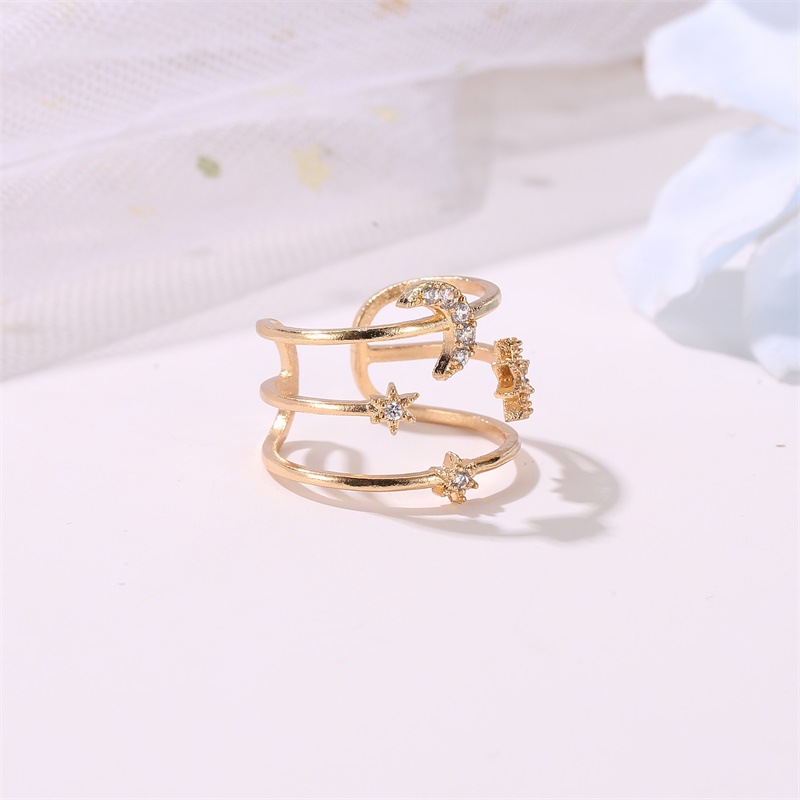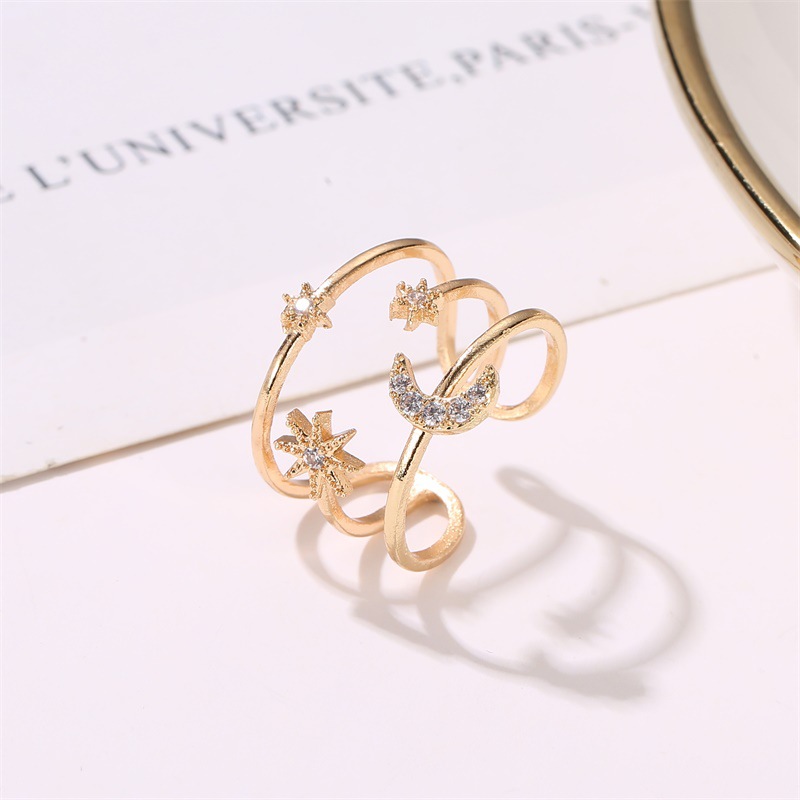 Hollow Star And Moon Ring Triple Layer European Copper Ring Electroplated Festival Jewelry Individually Packed