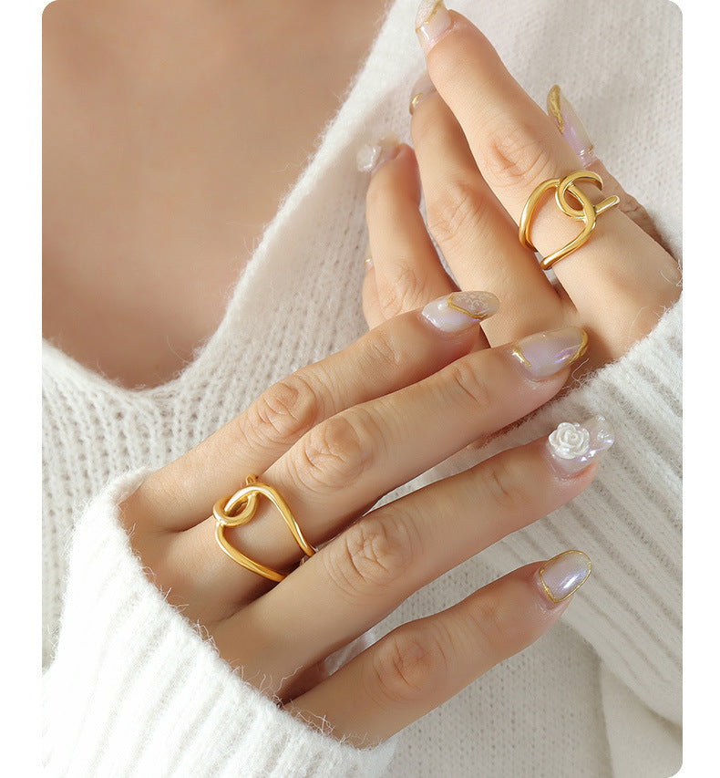 Titanium Steel 18K Gold Plating Double Ring Cross All-Match Ring