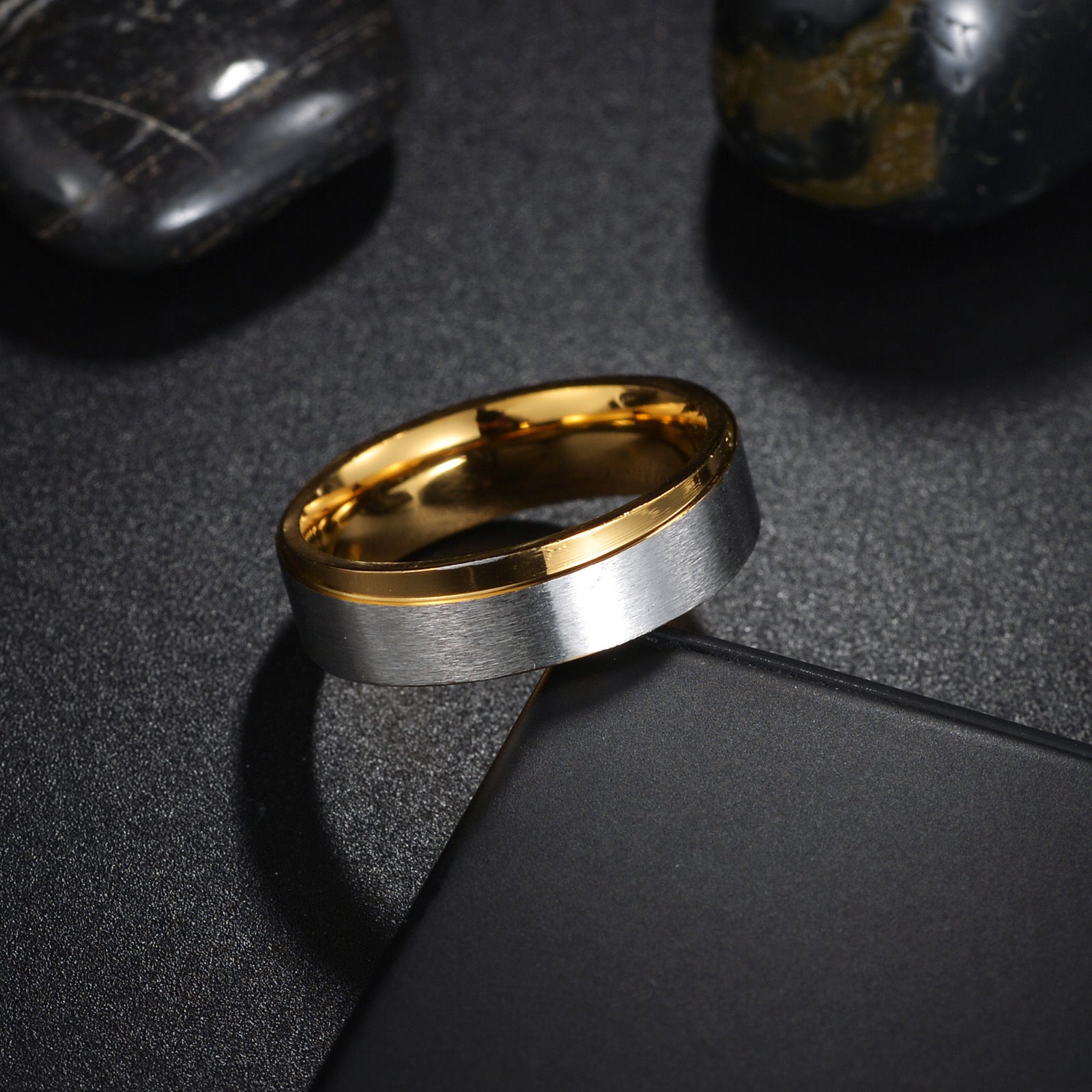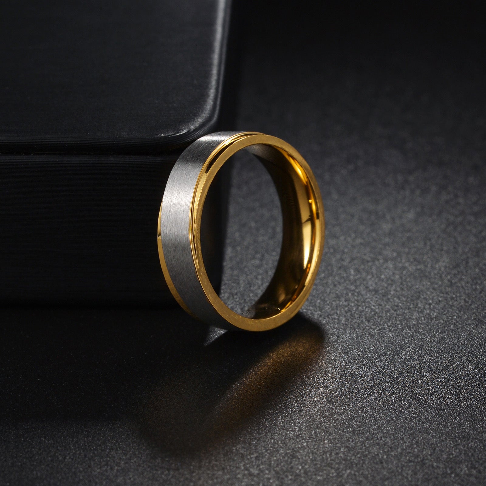 Womens Titanium Steel Ring Gold Matte Finish Electroplated Fade Resistant Simple Geometric Ring Ornament Gift