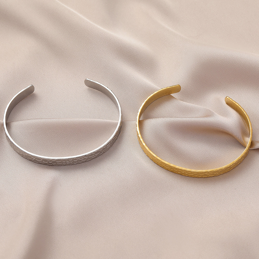 Womens Stainless Steel Bangle Bracelet Textured Nest Peak Design Electroplated European Fashion Timeless Piece