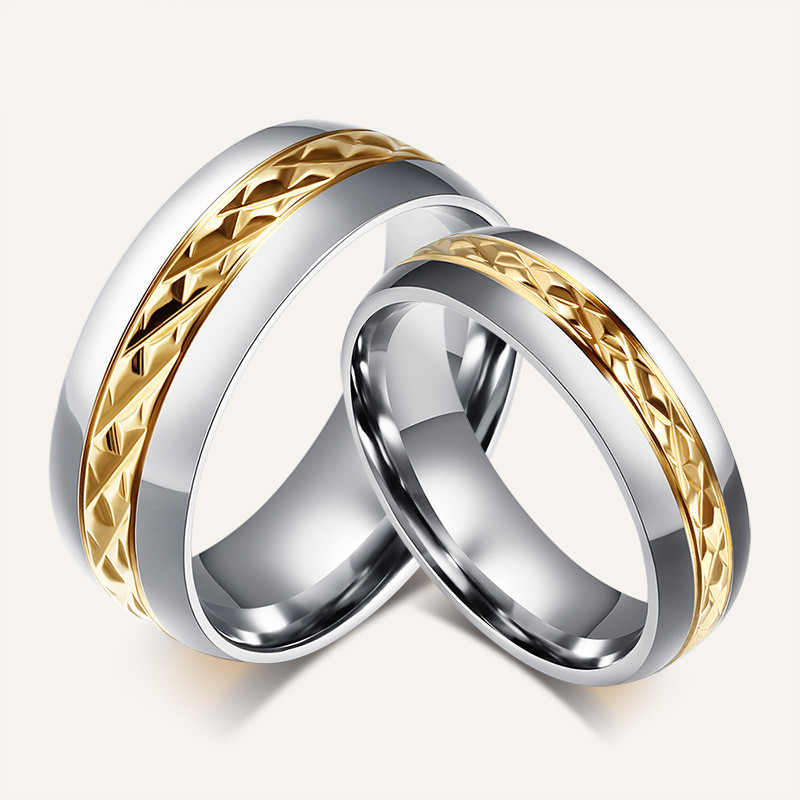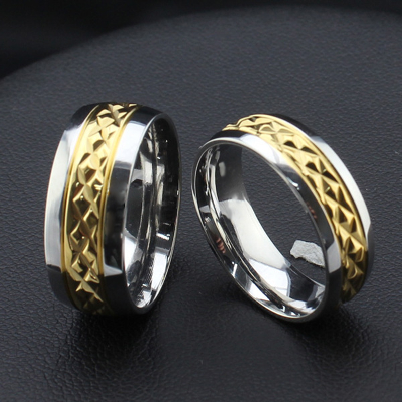 Titanium Steel Gold Plated Couple Ring Geometric Design For Couples Electroplate Jewelry Gift Ready For Lovers