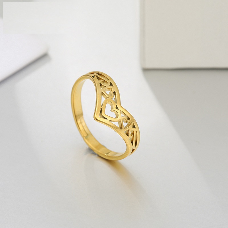 Womens Titanium Steel LoveHeart Ring Adjustable Opening Retro Ring With Metal Ethnic GeometricElements Fashion