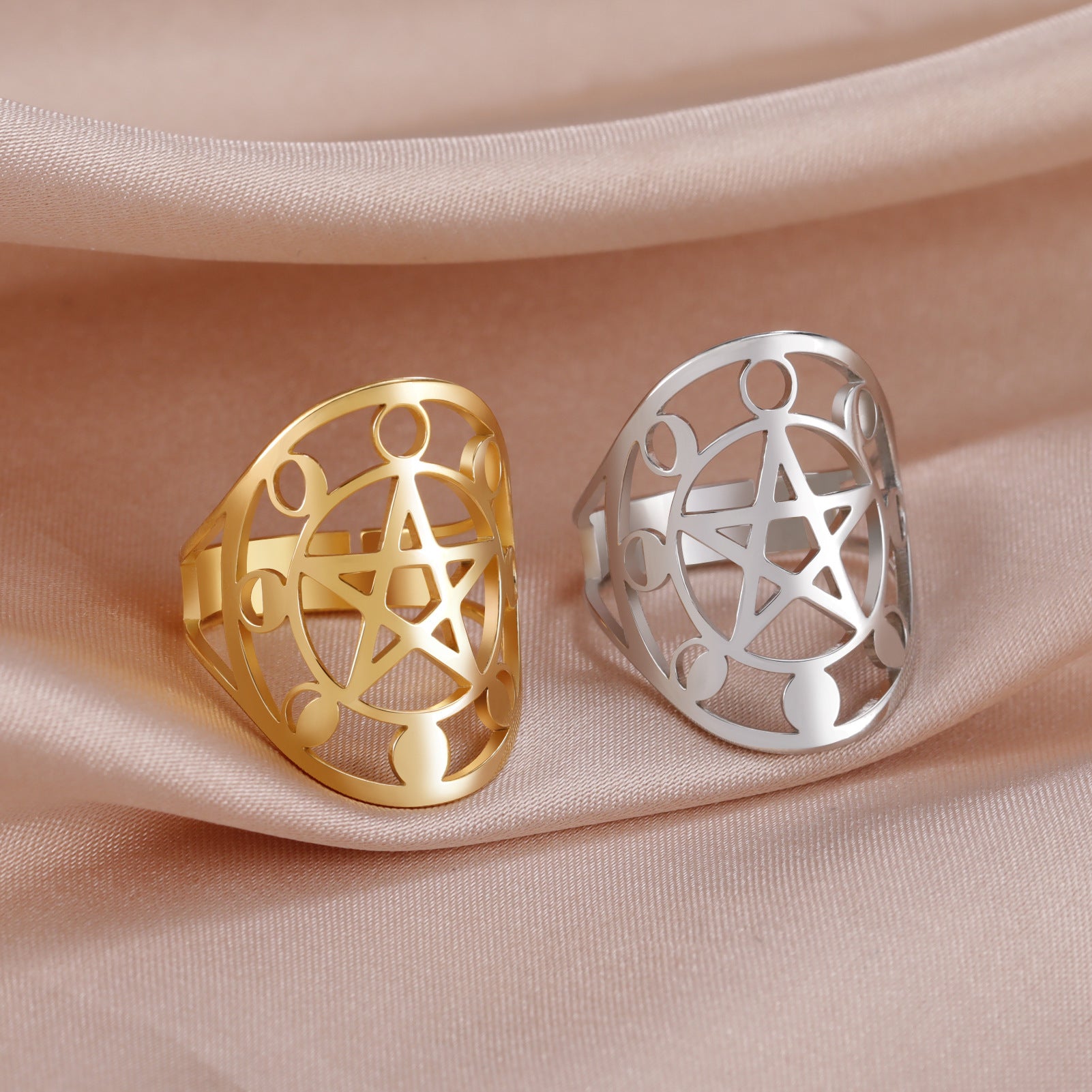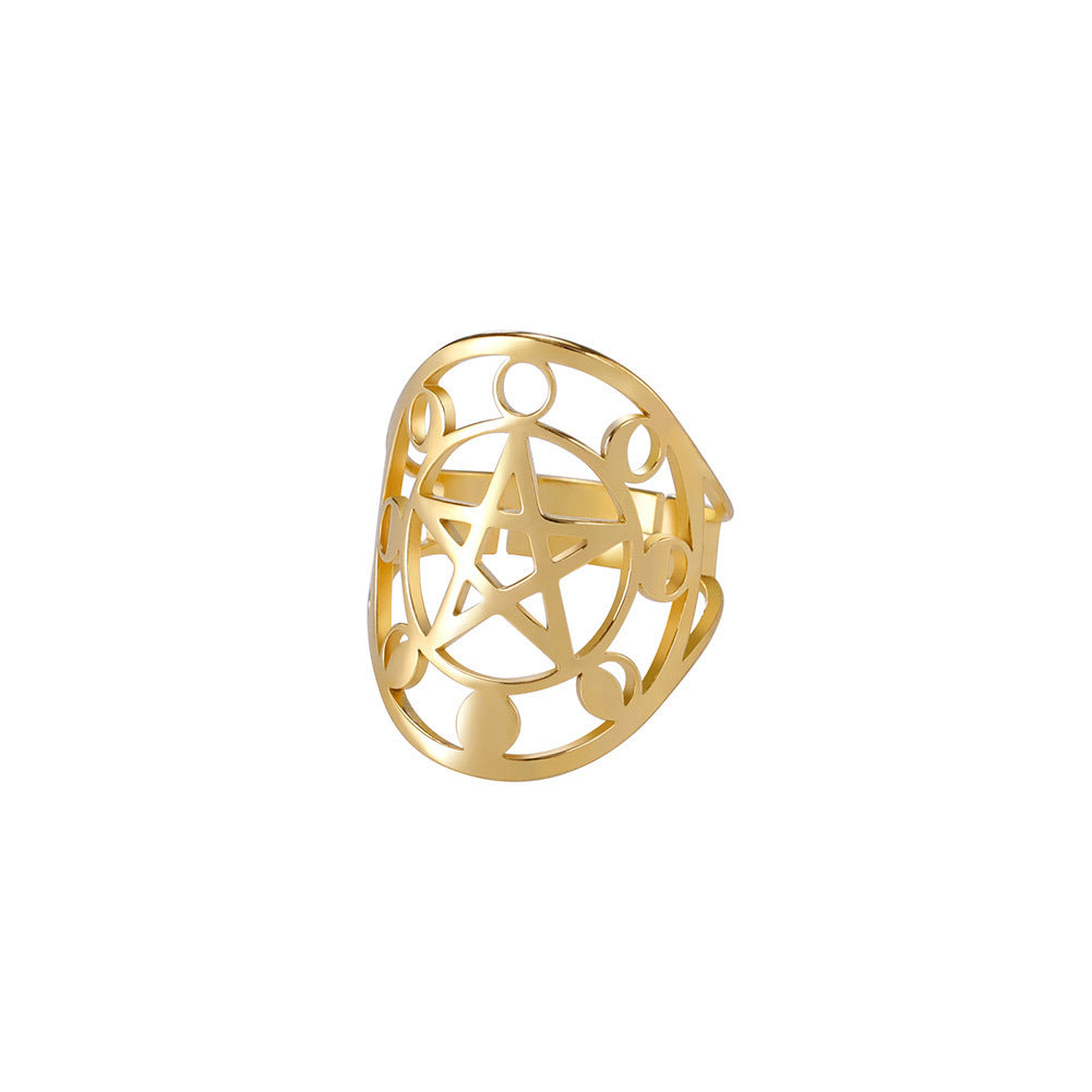 Unisex Stainless Steel Ring With Hollow Moon Phase And Five Star Design Electroplated Finish Band For Men Style