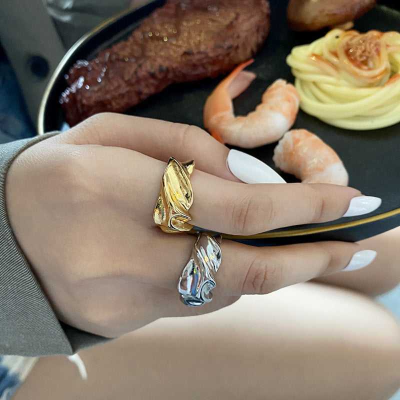Womens Adjustable Silver Plated Ring Trendy Irregular Geometric Design Jewelry Gift for Her Statement Accessory Gift