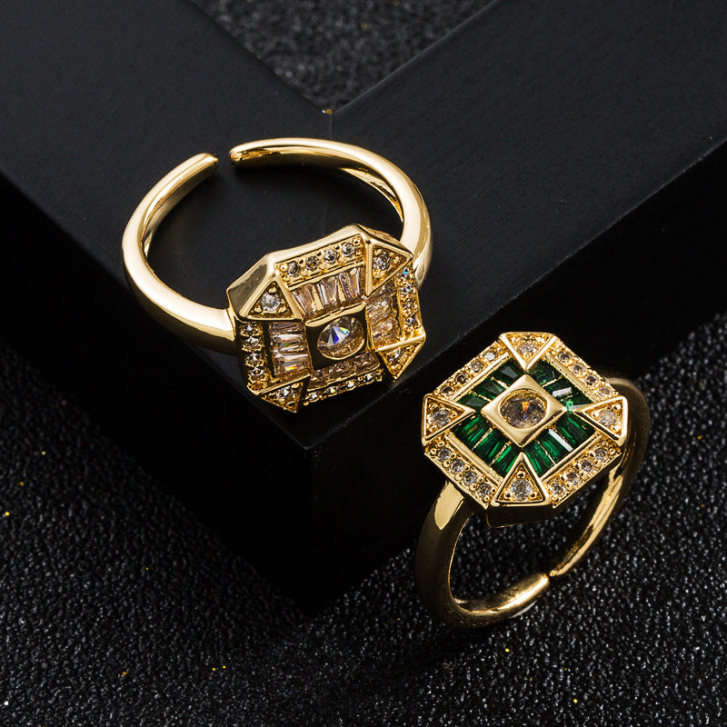 Copper Zircon Geometric Ring For Women Trendy Minimal Fashion Accessory Jewelry For Everyday Wear Gift For Her